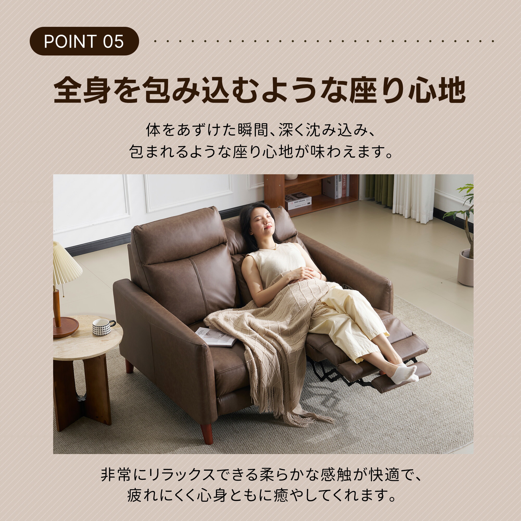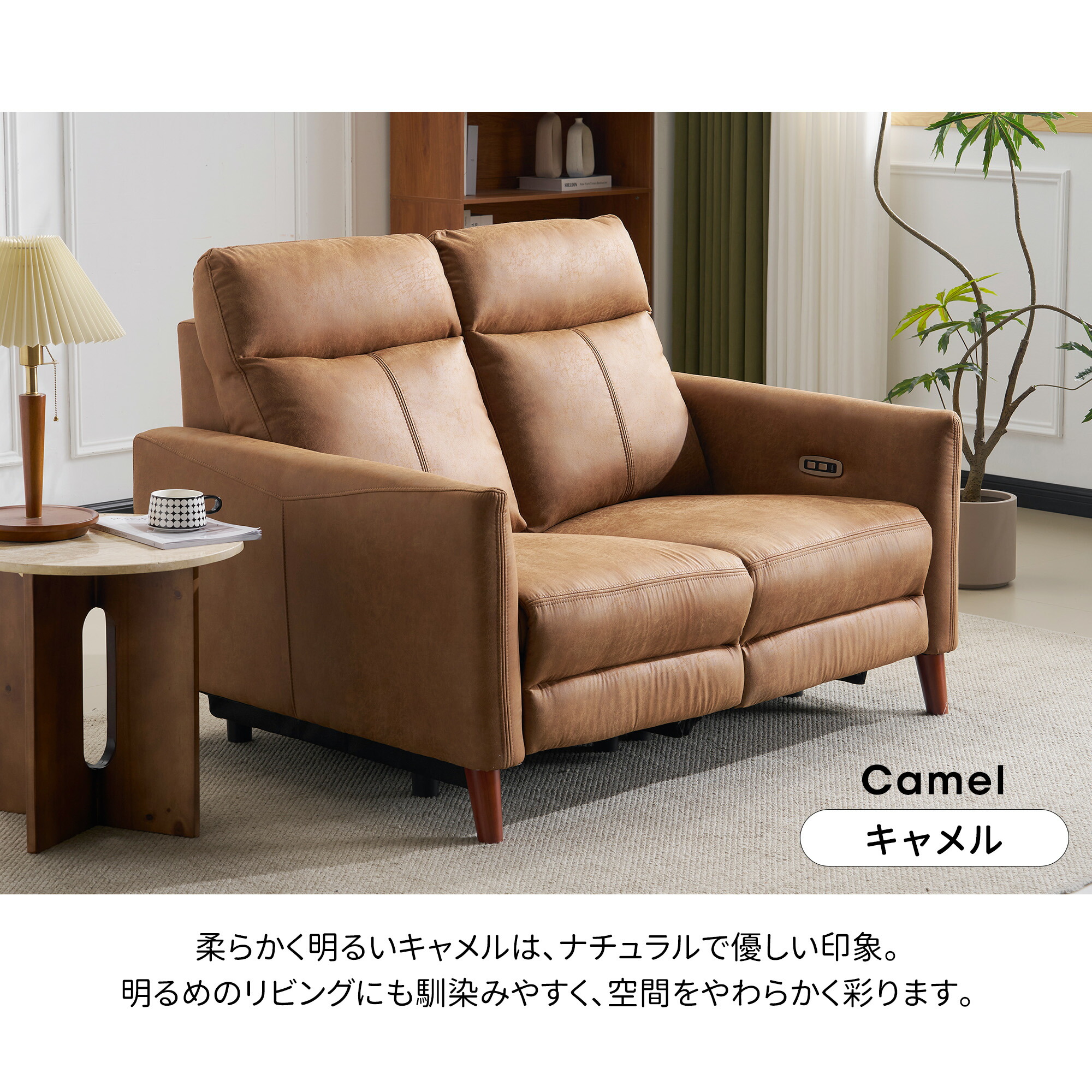 電動ソファ 2人掛け リクライニングチ ブロンズブラウン キャメル チャコールグレー