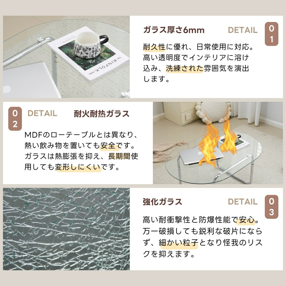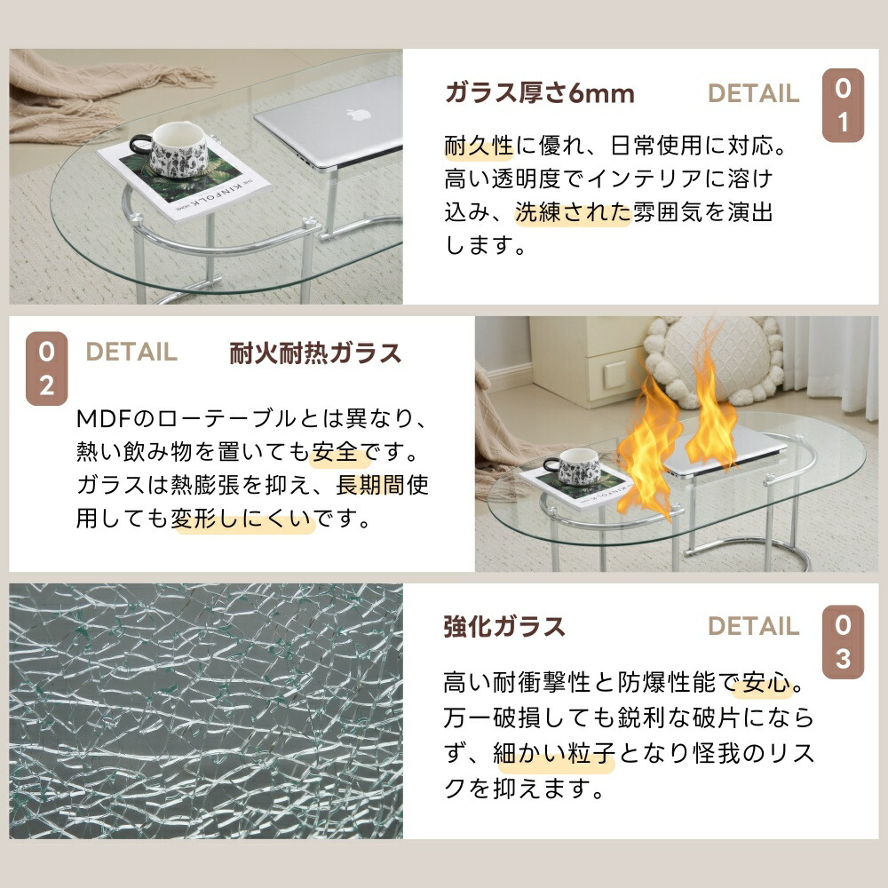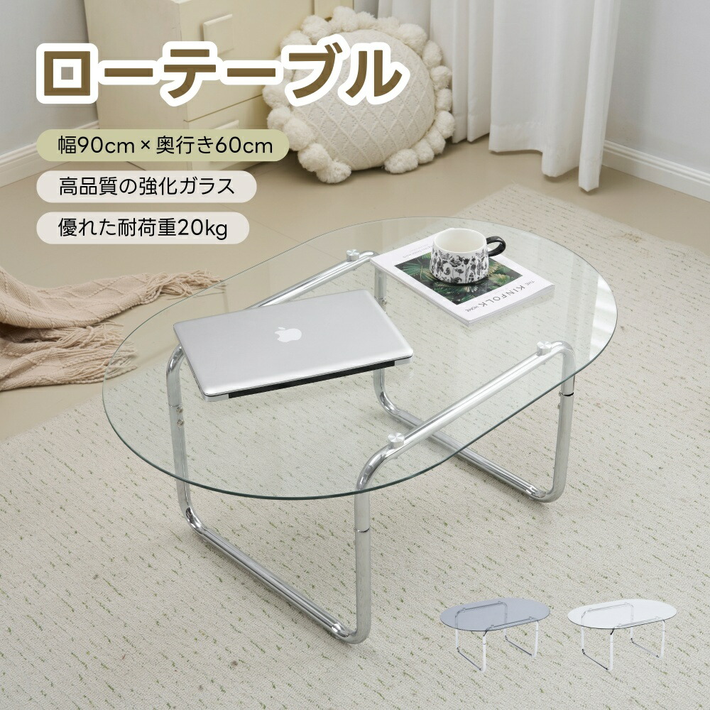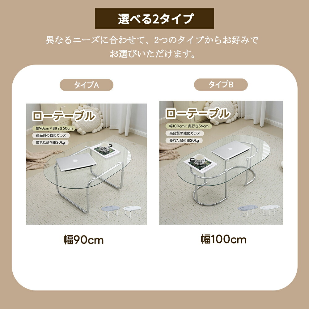 ガラステーブル テーブル ローテーブル タイプA-幅90cm タイプB-幅100cm クリア グレー
