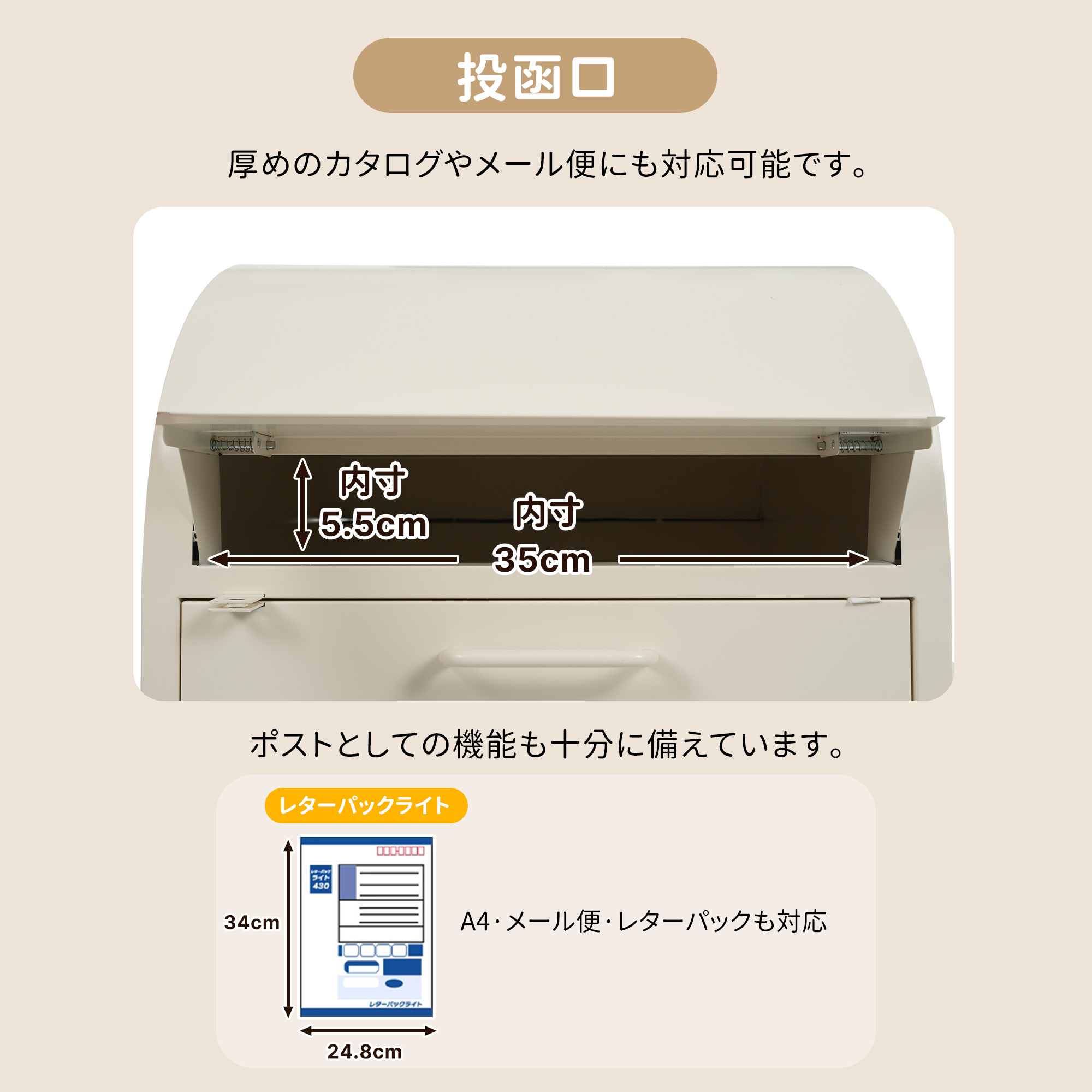 ポスト 置き型 ほぼ完成品 傘立て付き ベージュ+木目 ブラックー+木目