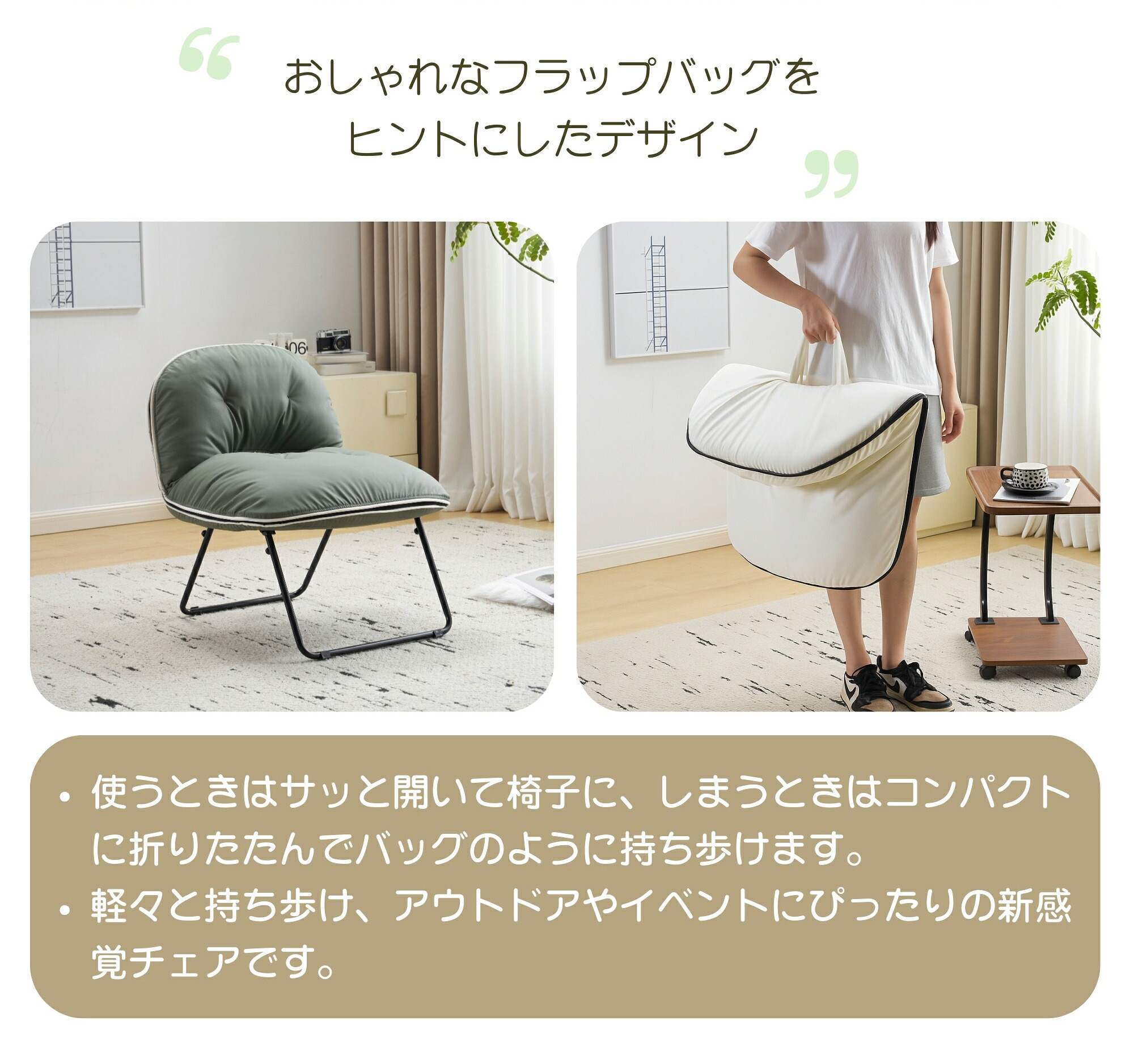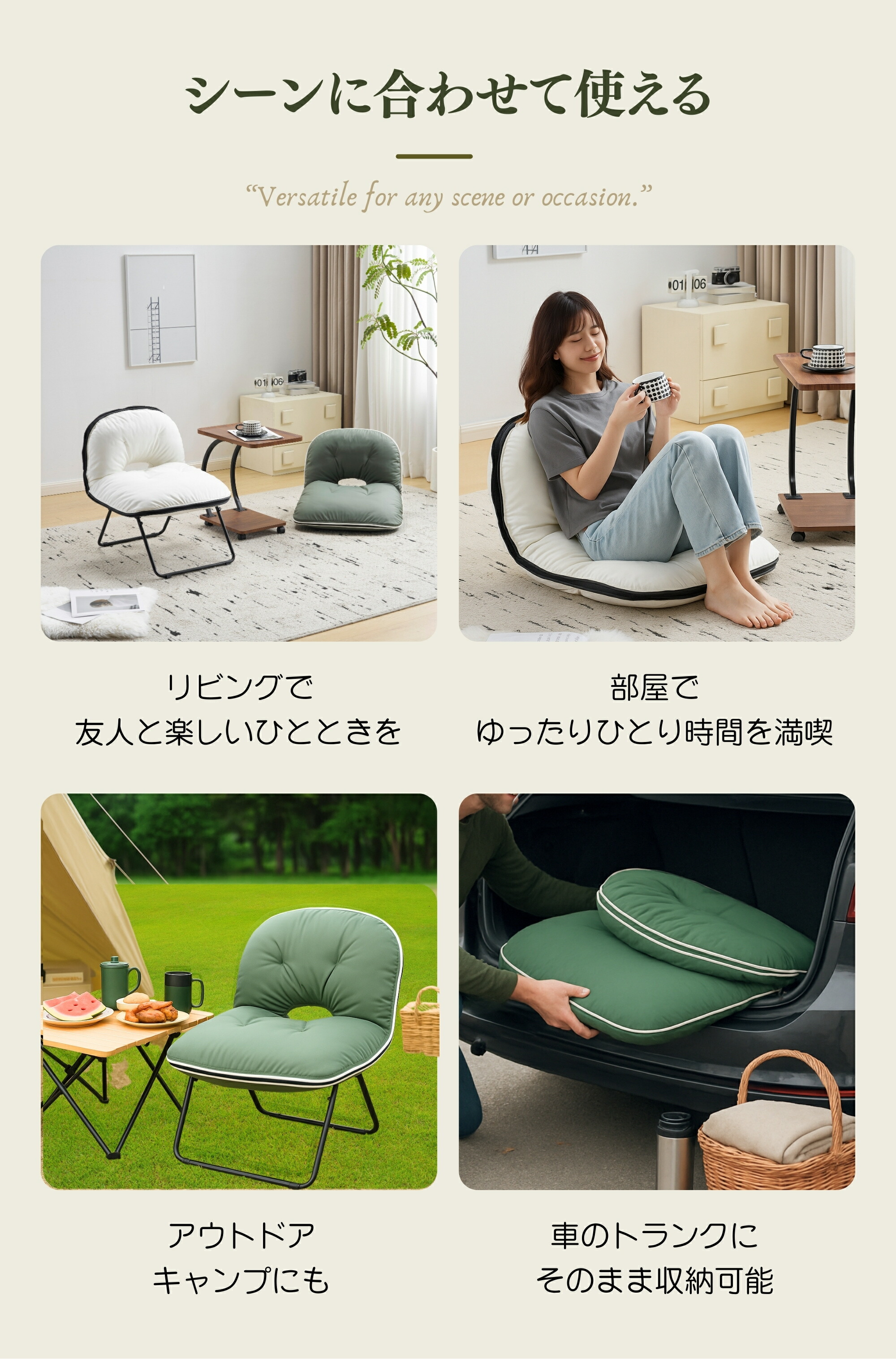 折りたたみチェア 軽量 座椅子 アウト ベージュ グリーン