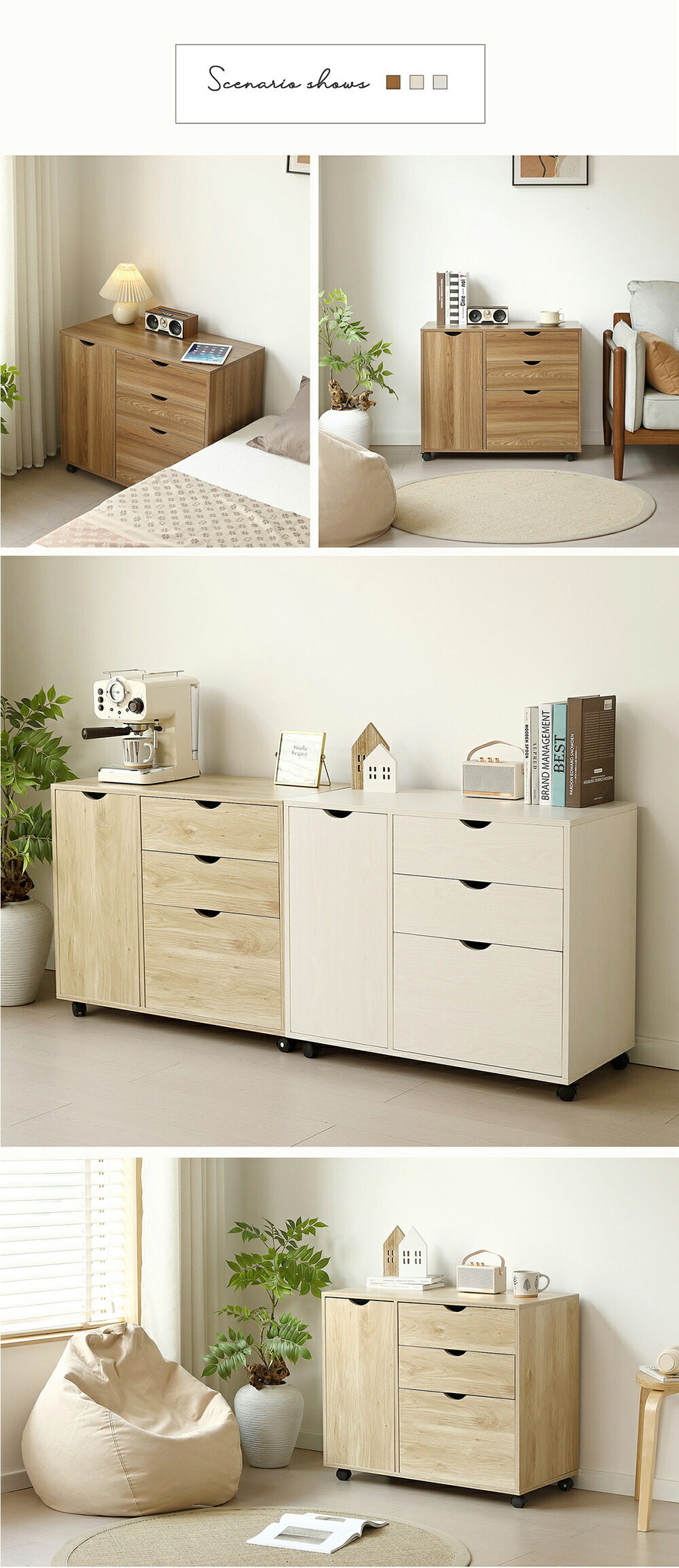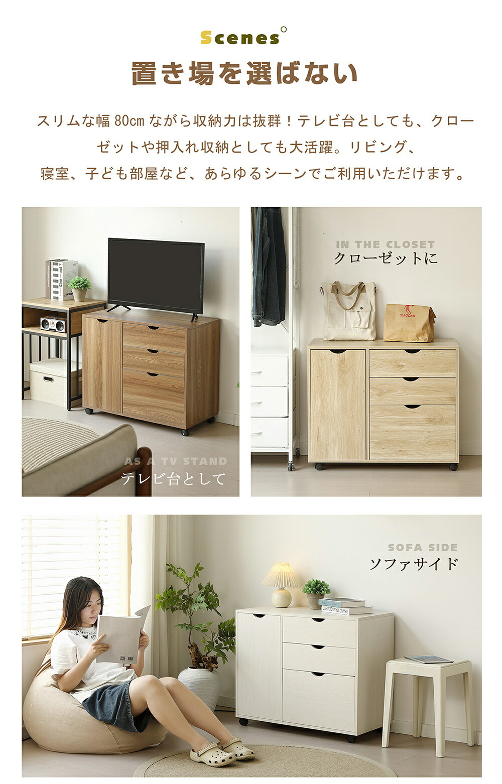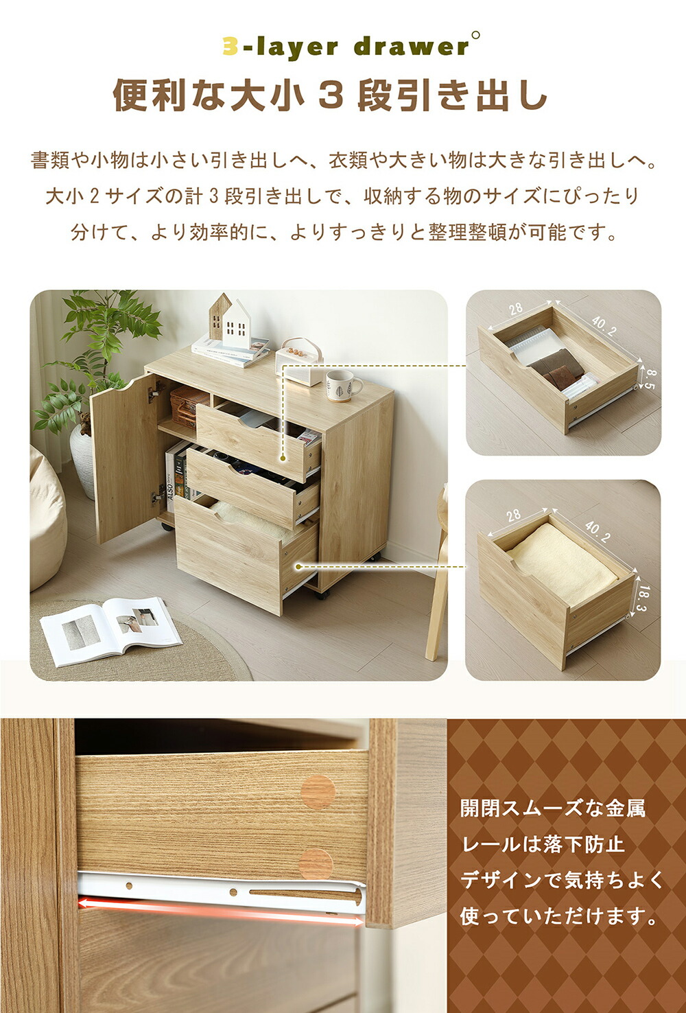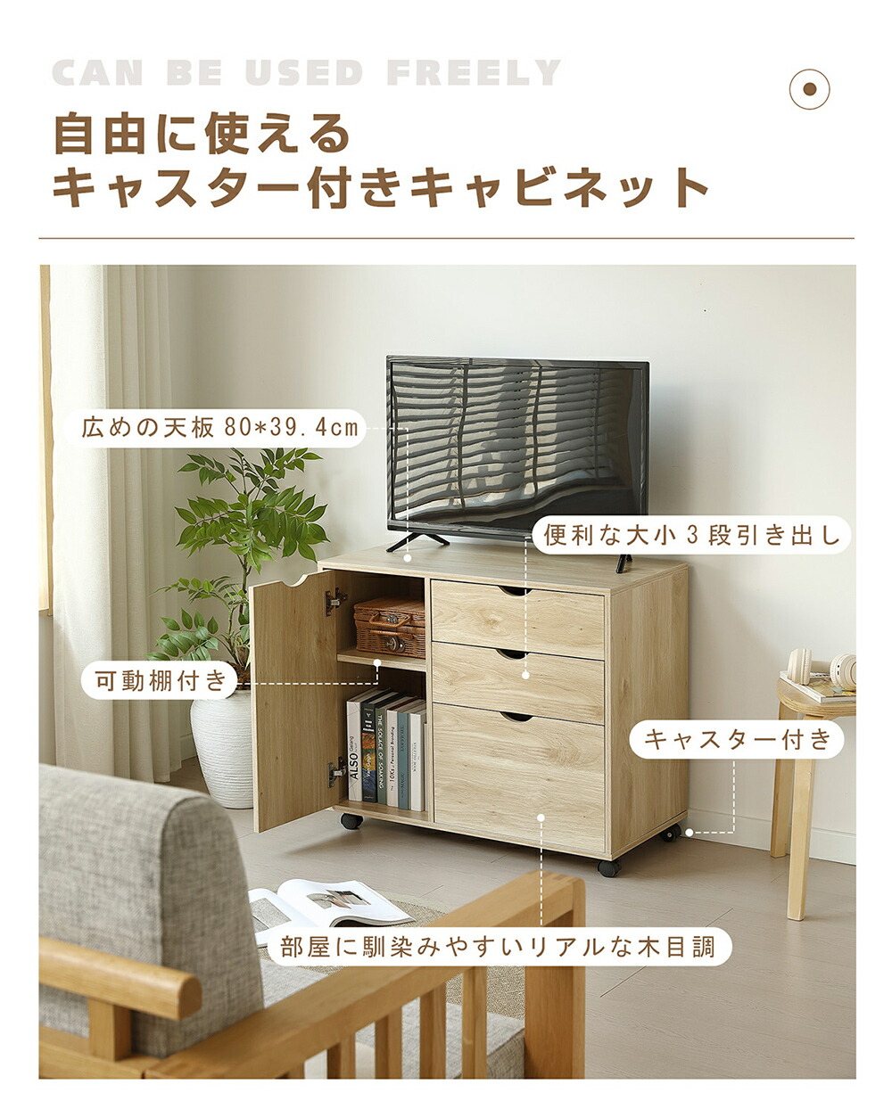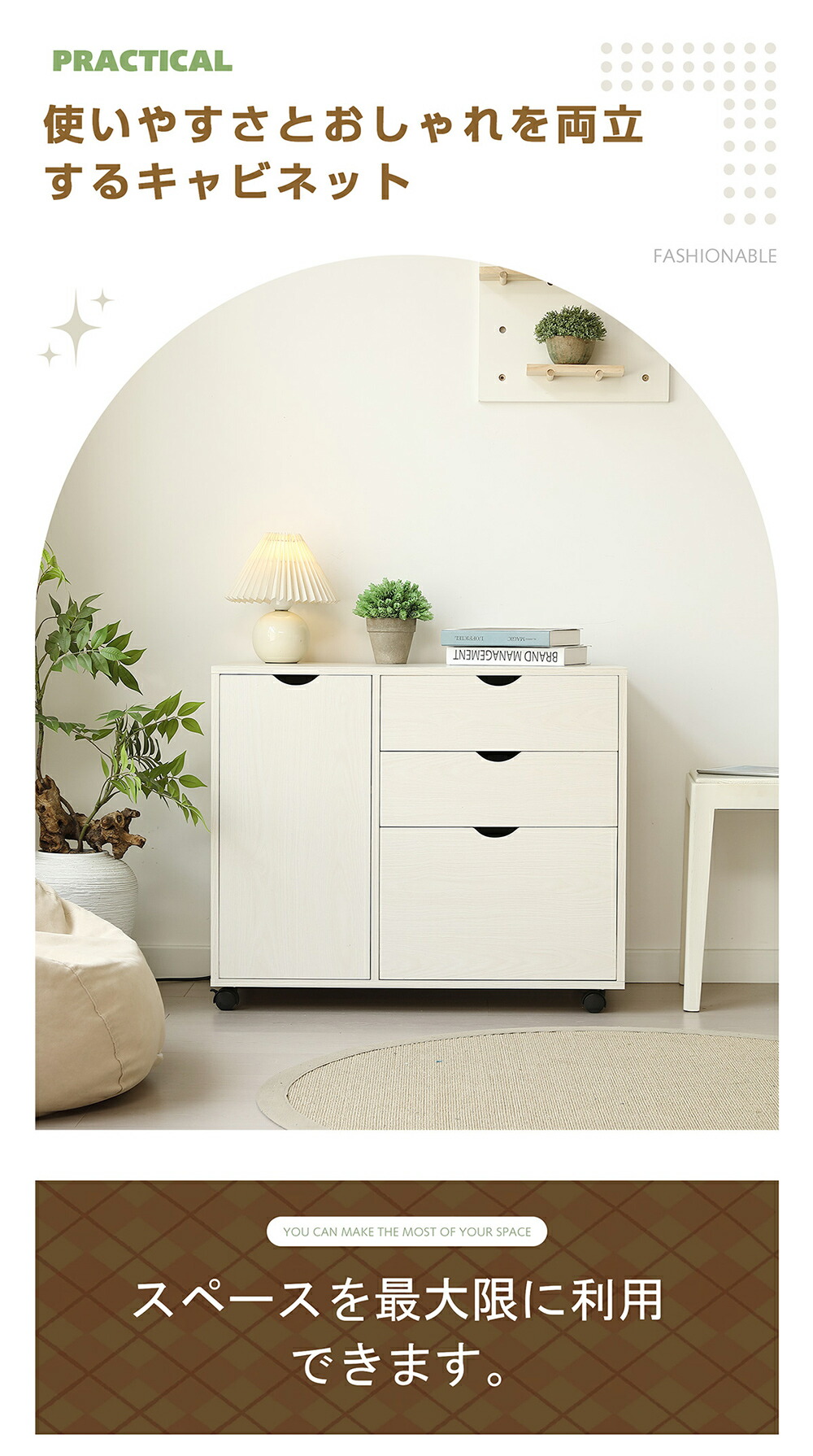 キャビネット 扉付き サイドボード 収 ブラウン ナチュラル