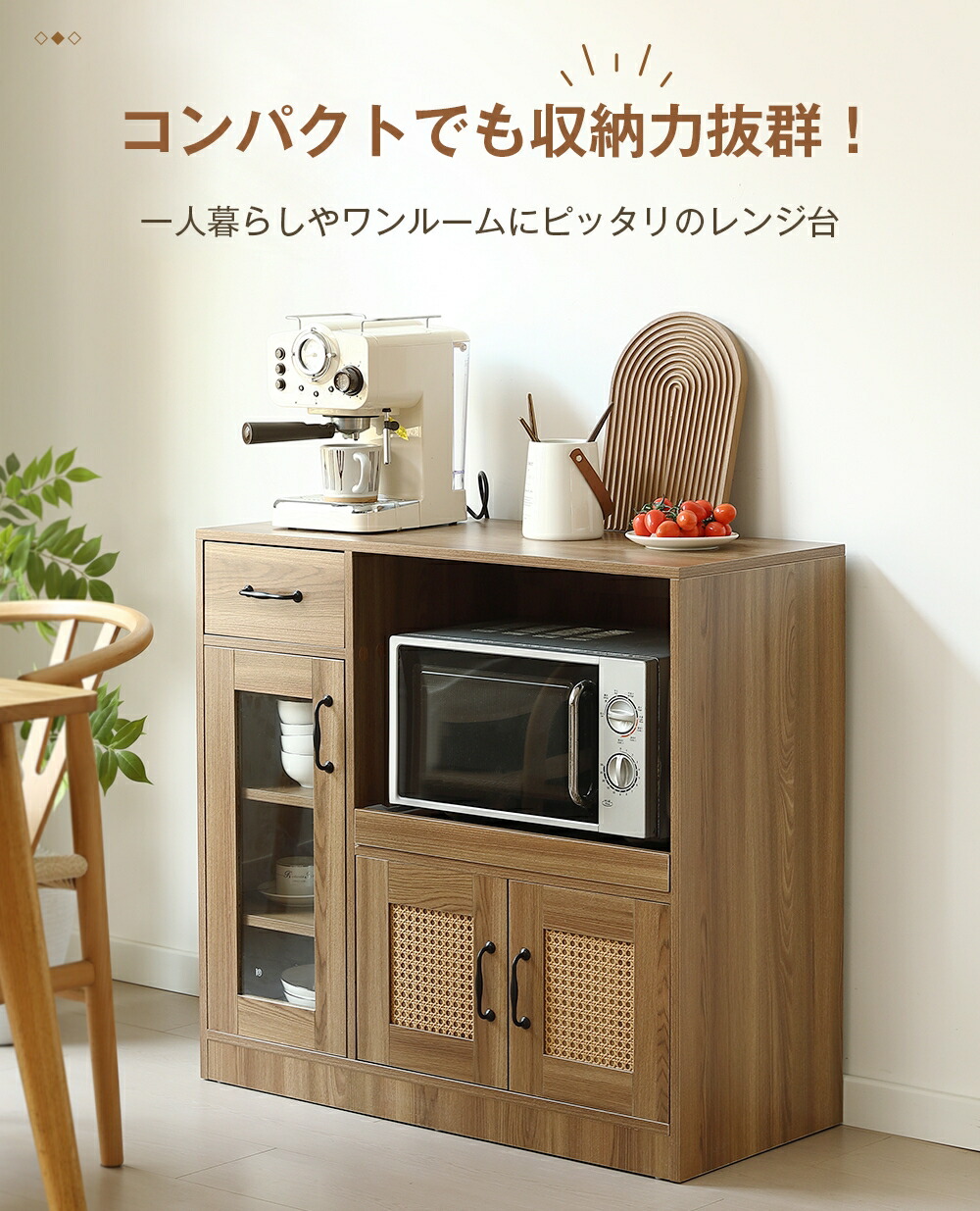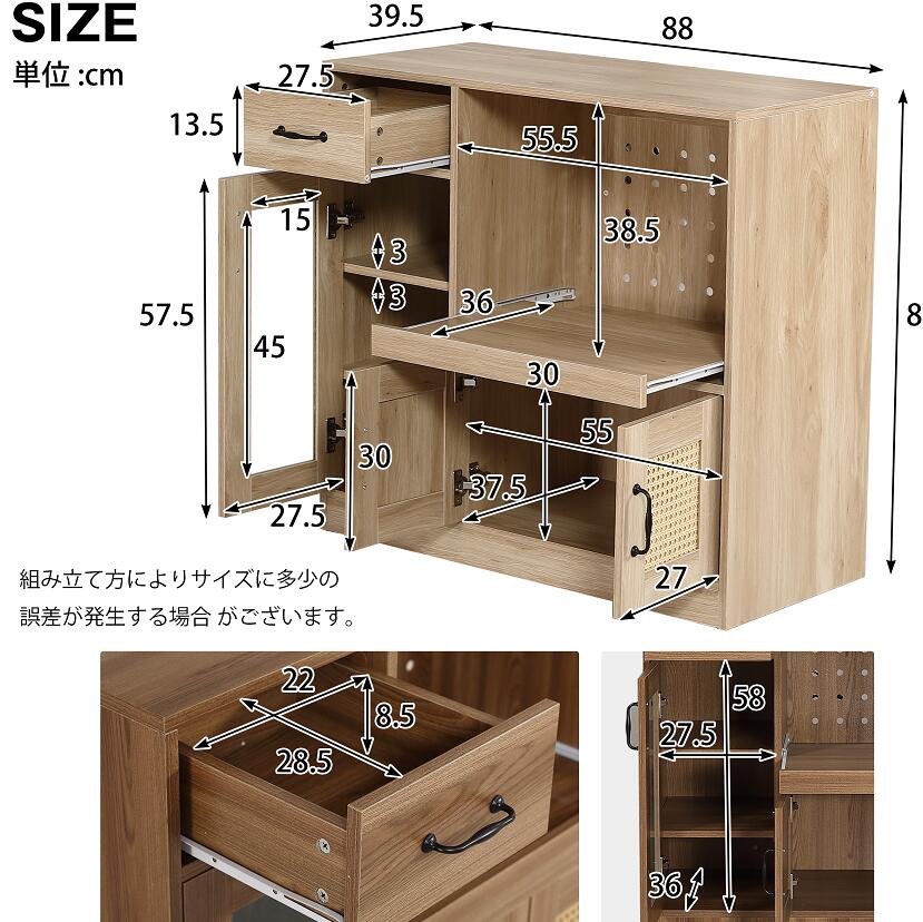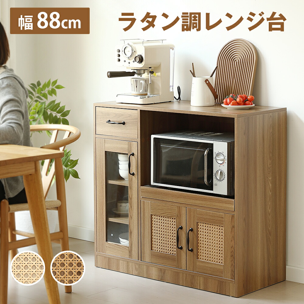 キャビネット ラタン調 扉付き サイド ブラウン ナチュラル