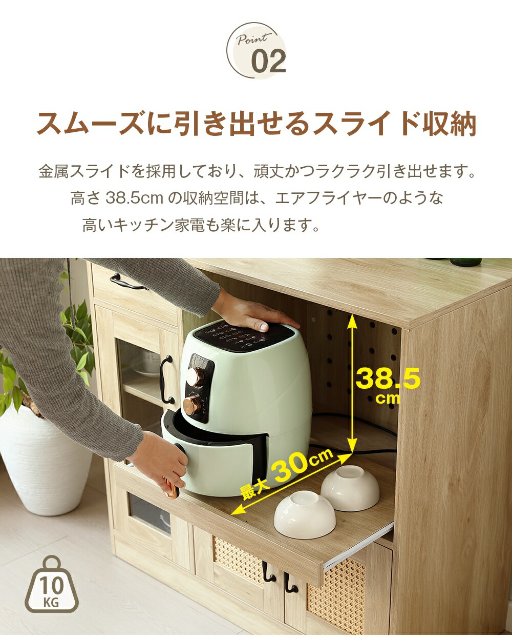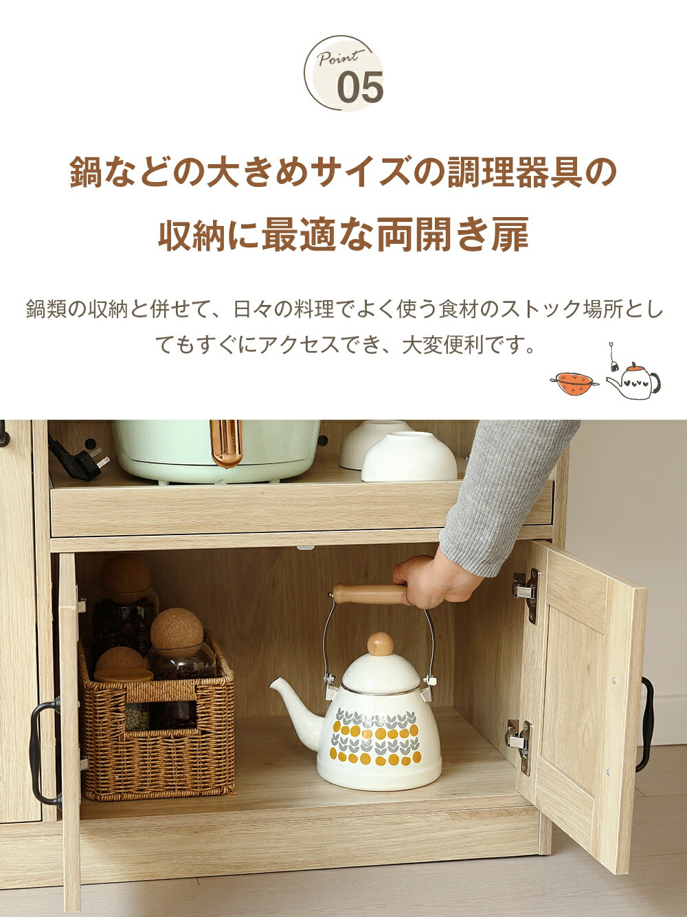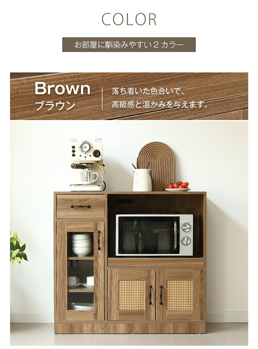 キャビネット ラタン調 扉付き サイド ブラウン ナチュラル