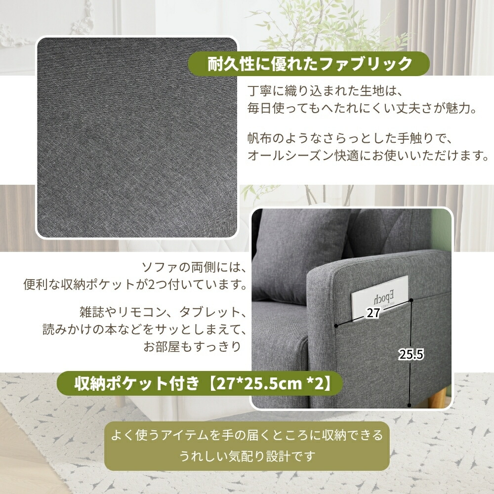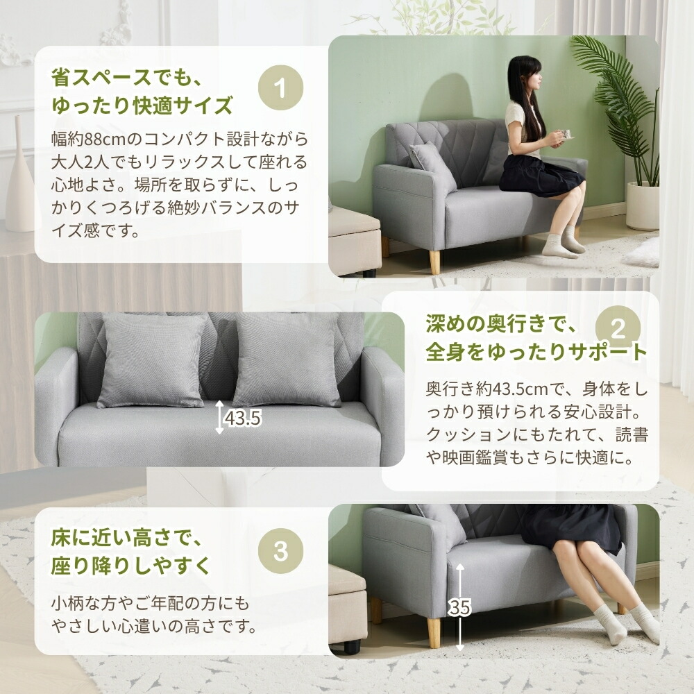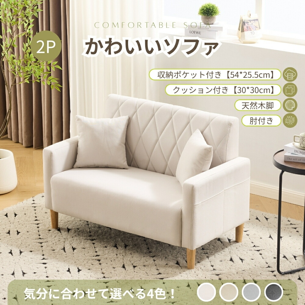 ソファー 2人掛けソファー コンパクト ホワイト ダックグレー ライトグレー ベージュ
