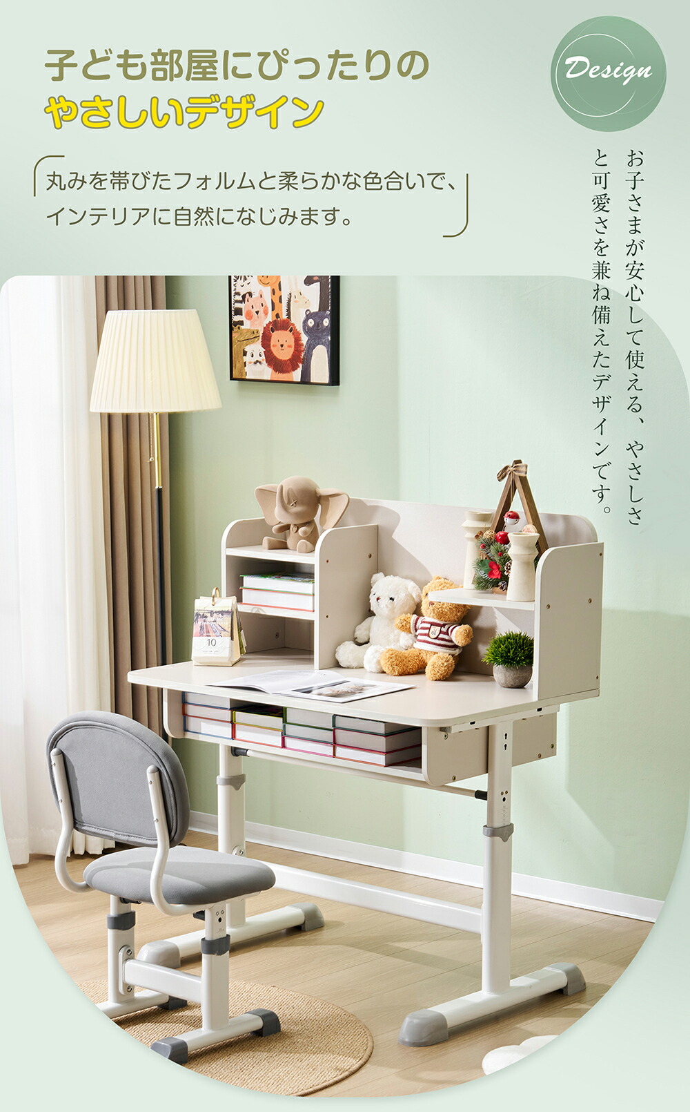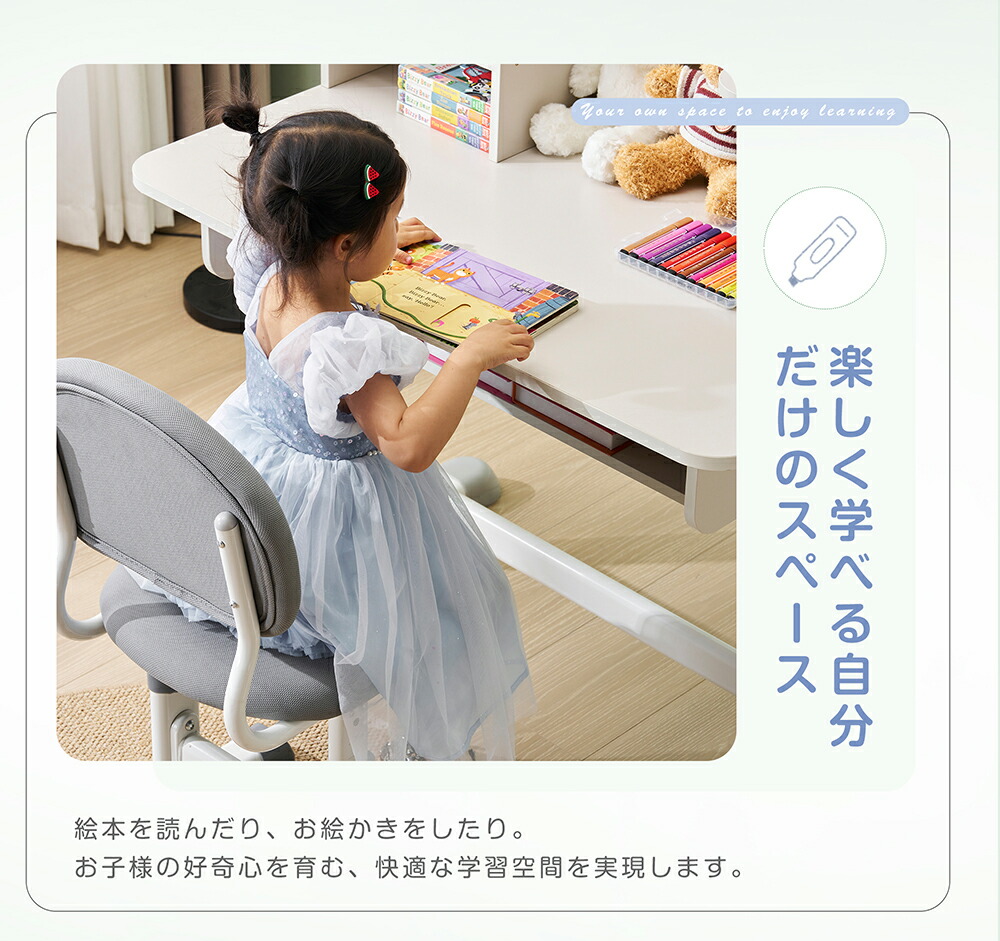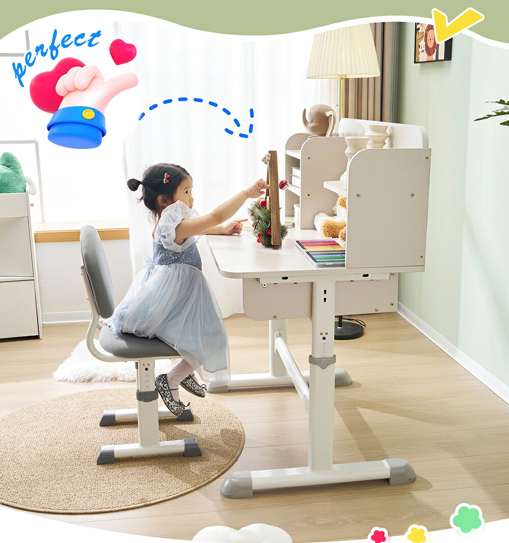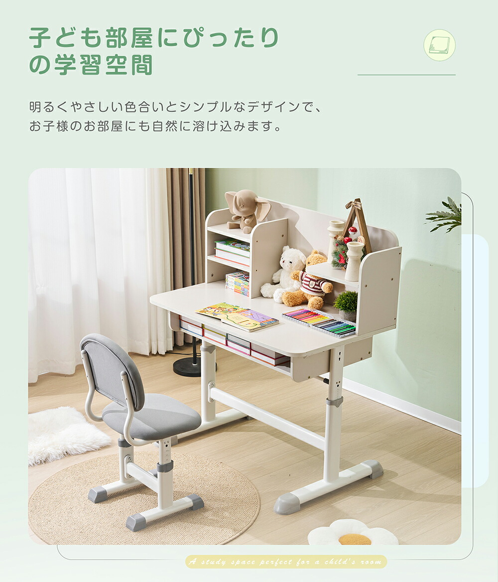 勉強デスク 昇降式 収納棚 学習机 デ