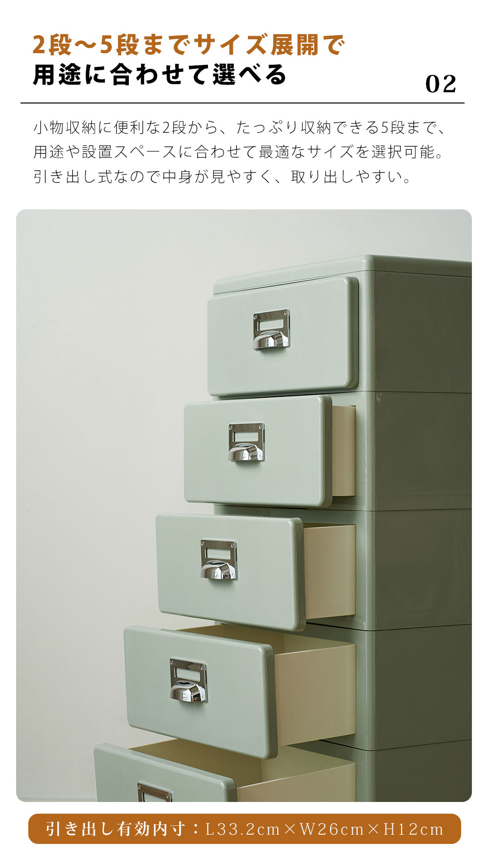 収納ケース 整理タンス 組立不要 2段 2段 4段 5段 アイボリーホワイト レトログリーン
