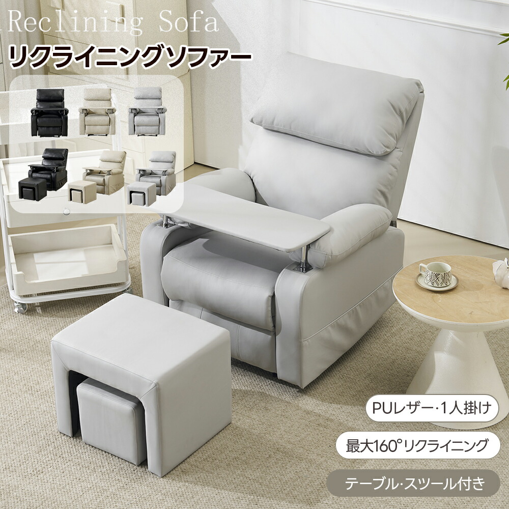 リクライニングソファー ソファー リク ソファ単品 ソファ+スツール付き ベージュ グレー ブラック