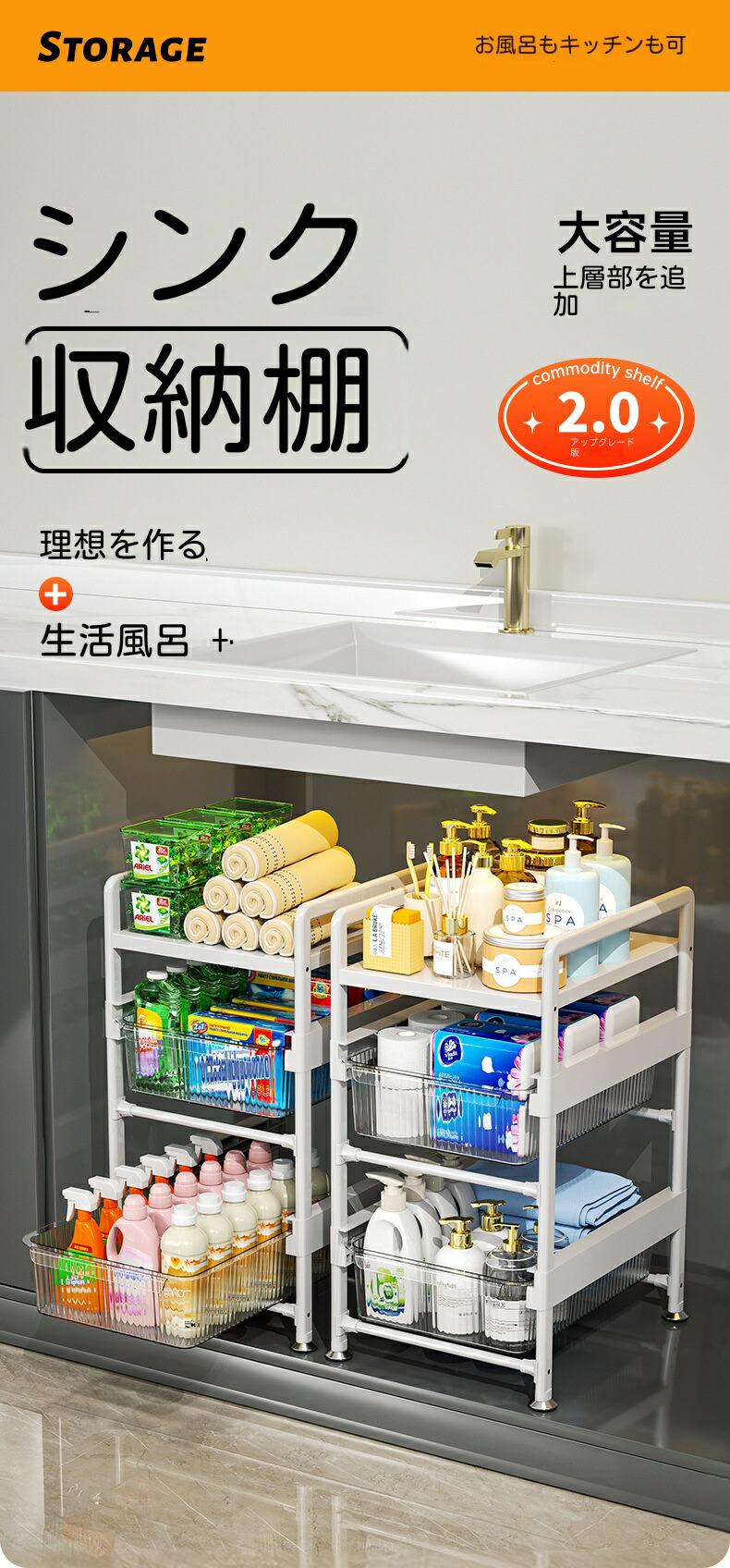 シンク下収納 2段 3段 洗面台下 収 39*39*22 59*39*22 39*39*32 59*39*32