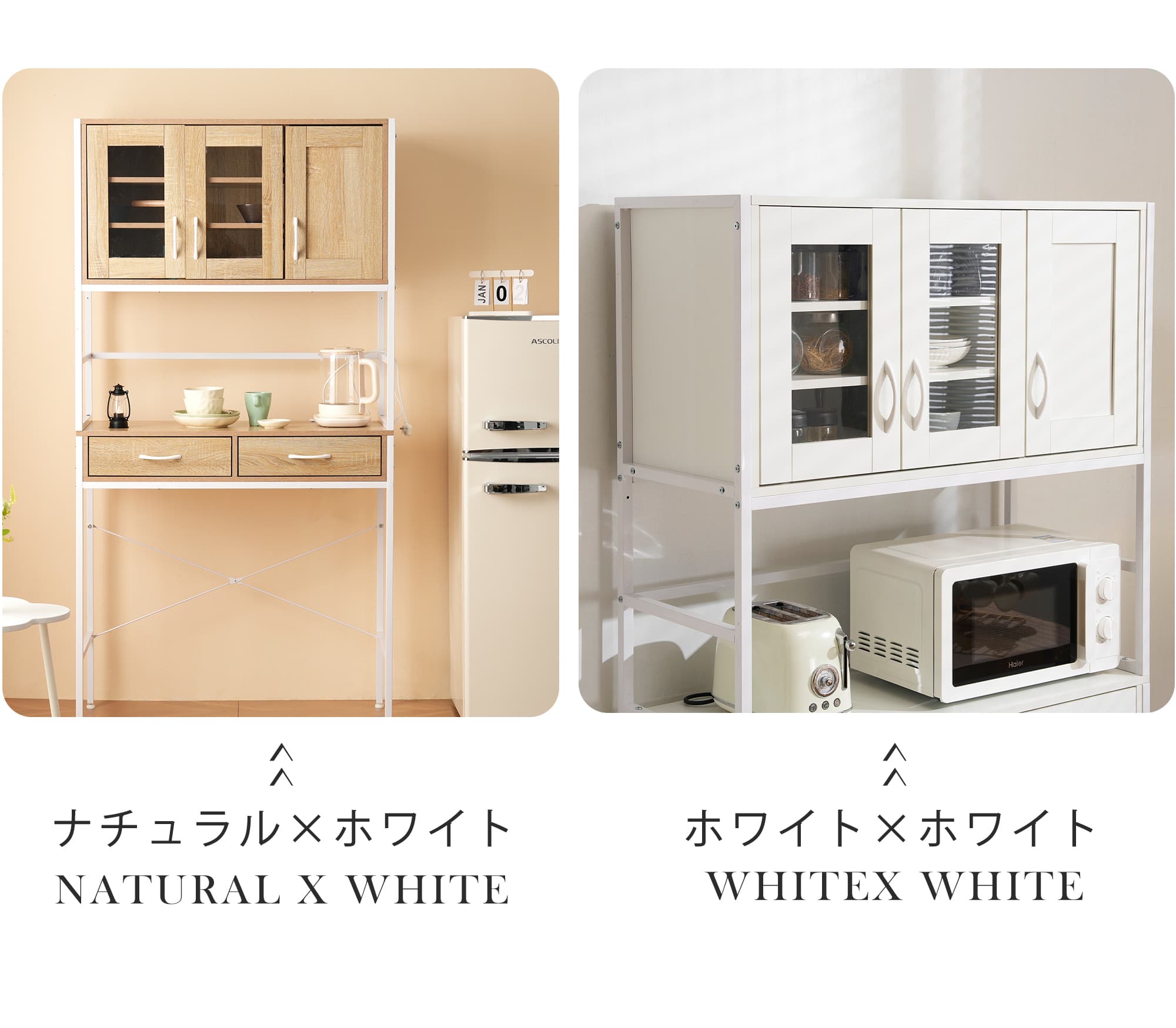 食器棚 キッチンボード レンジボード ホワイト ナチュラル