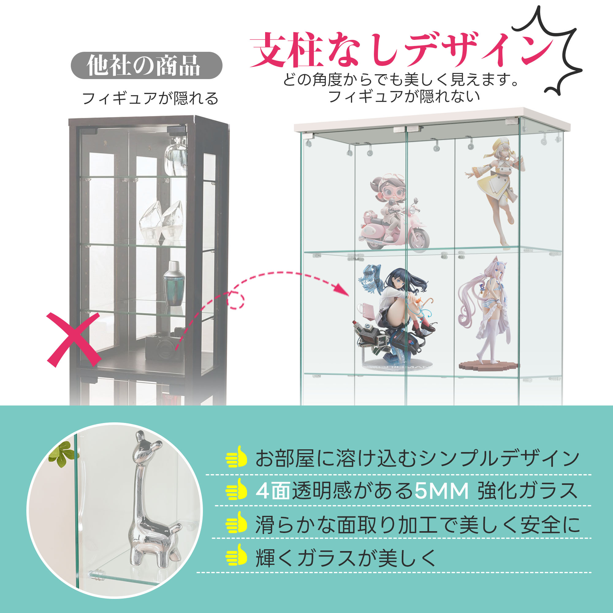 コレクションケース 両扉タイプ 大容量収納 強化ガラス キャビネット フィギュアケース ガラスディスプレイキャビネット 全面ガラス おしゃれ コレクションシェルフ