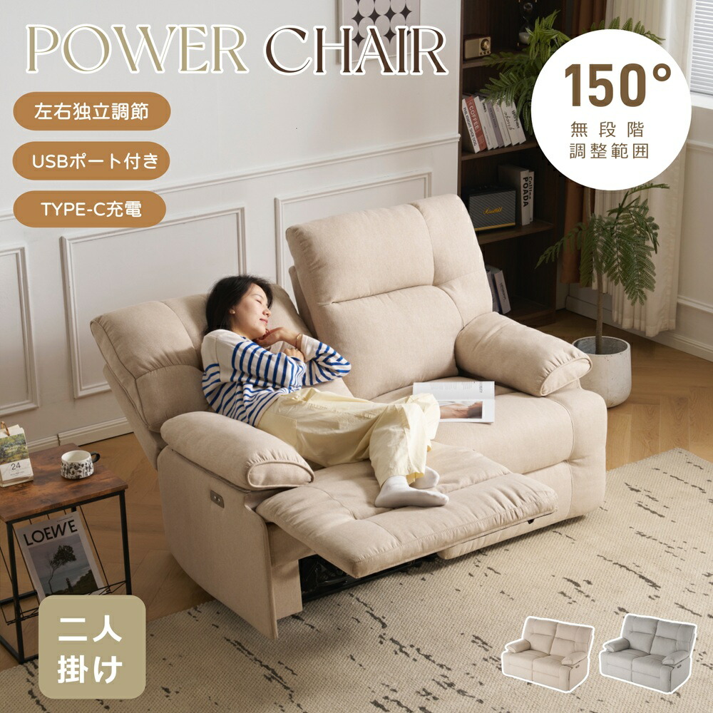 リクライニングソファ 電動リクライニン ベージュ グレー