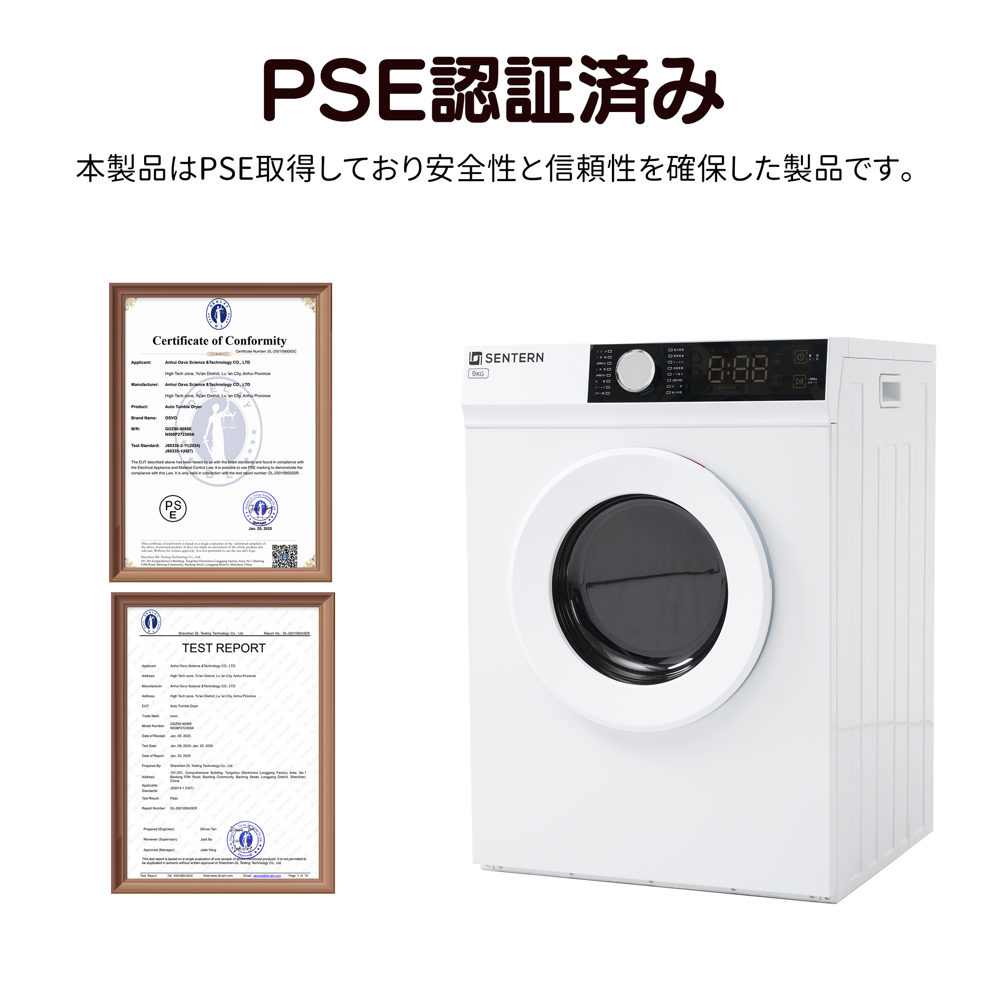衣類乾燥機 9kg 家庭用 大容量 大型 乾燥機 自動乾燥 温度調節 除湿 高温除菌 シワ取り 布団乾燥 アイロン 静音 チャイルドロック ドラム式 湿気対策 カビ対策 花粉対策 PSE認証 梅雨対策