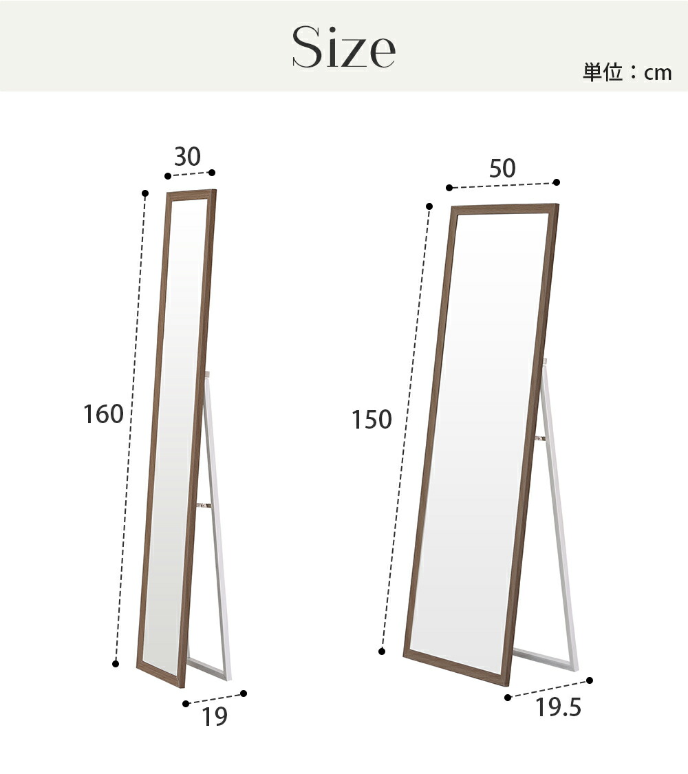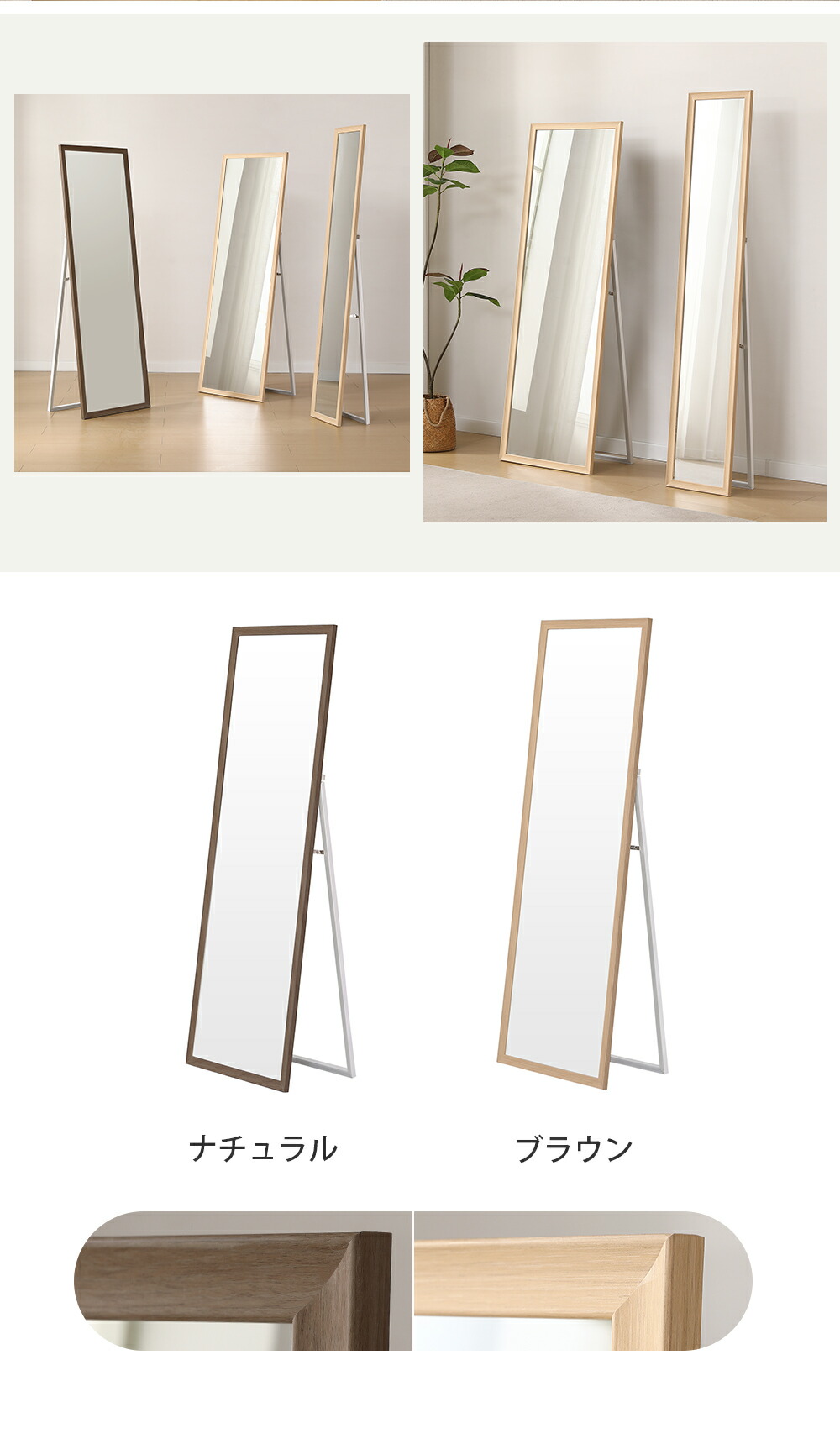 全身鏡 ミラー 玄関 全身 姿見 30 ブラウン ナチュラル 30×160cm 50×150cm
