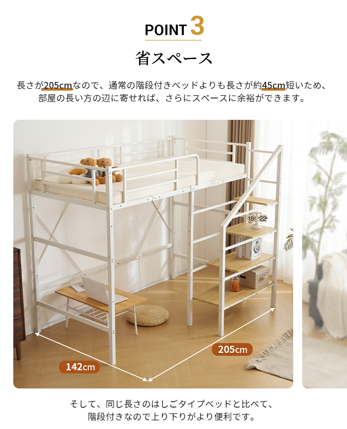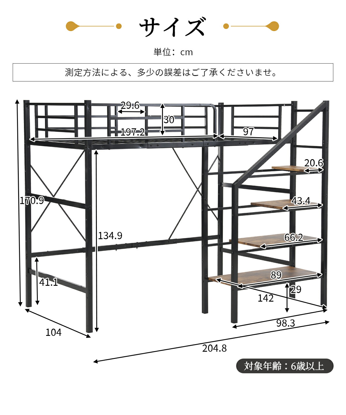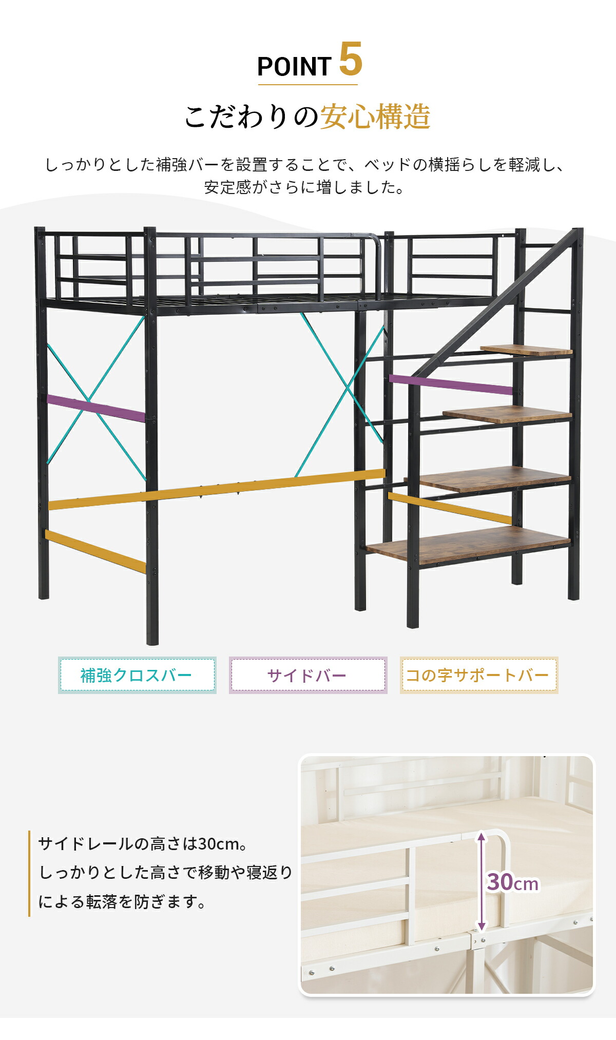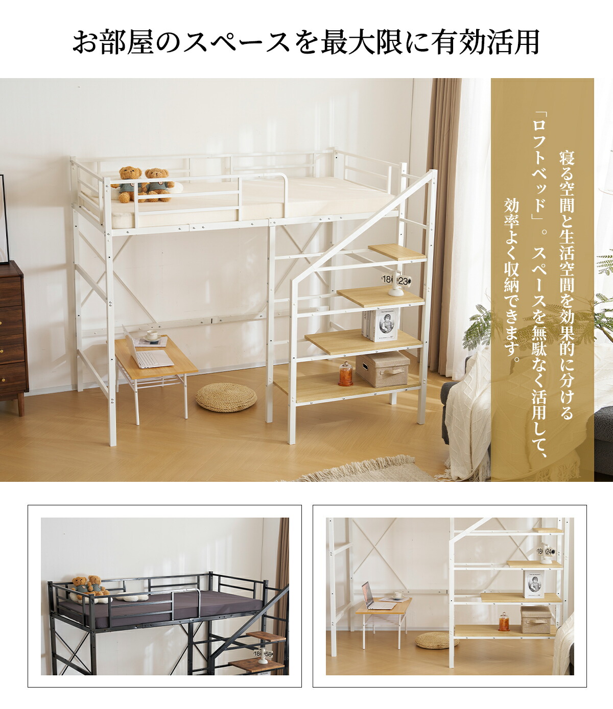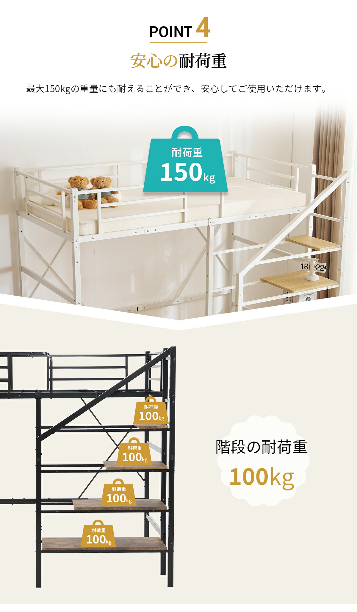 ロフトベッド 階段付き システムベッド ブラック ホワイト