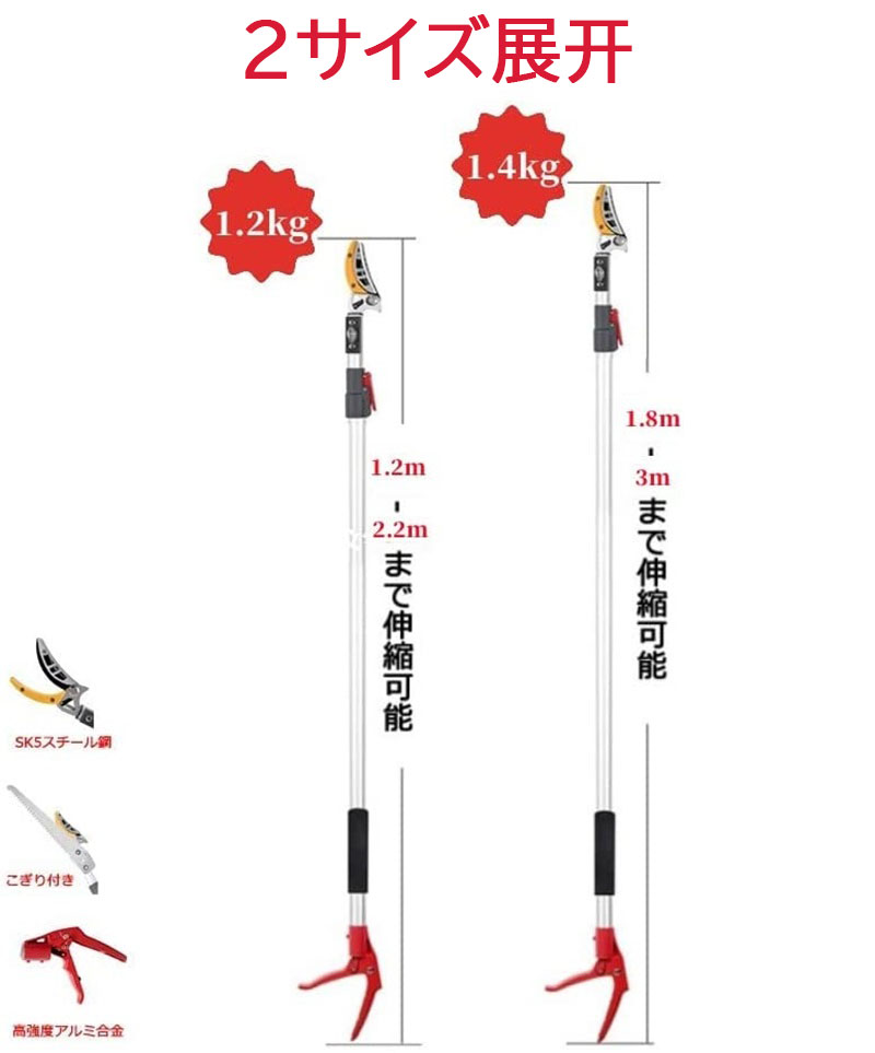 高枝切りバサミ 高枝切鋏 2段伸縮式高 type1 type2
