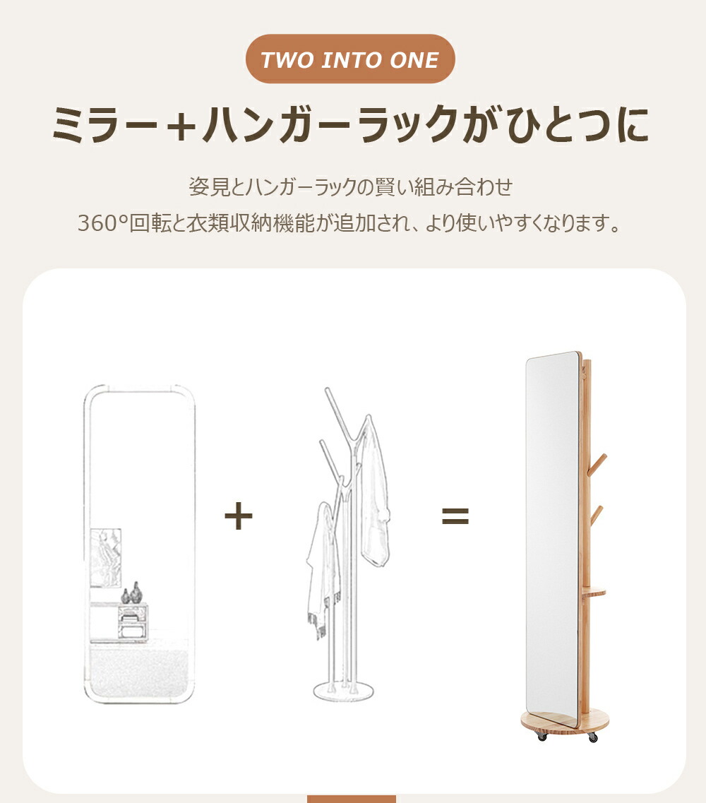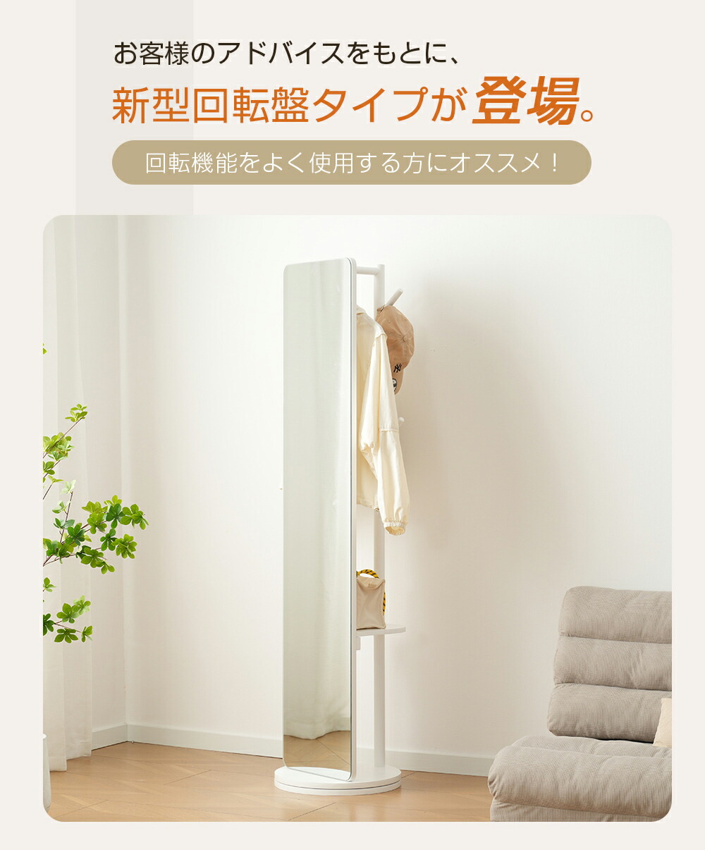 鏡 全身鏡 ミラー 回転ミラー スタン キャスタータイプ 回転盤タイプ ナチュラル ホワイト