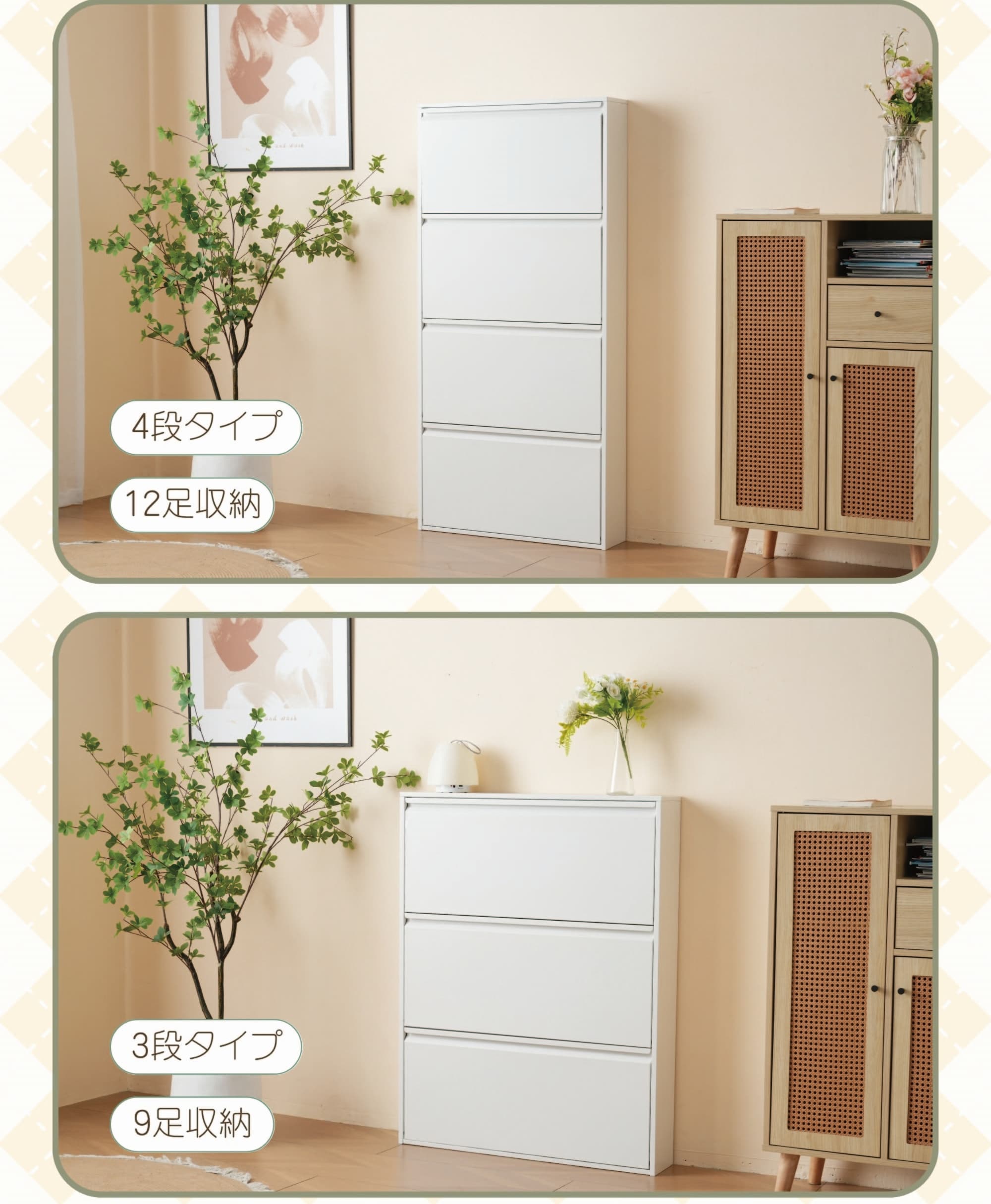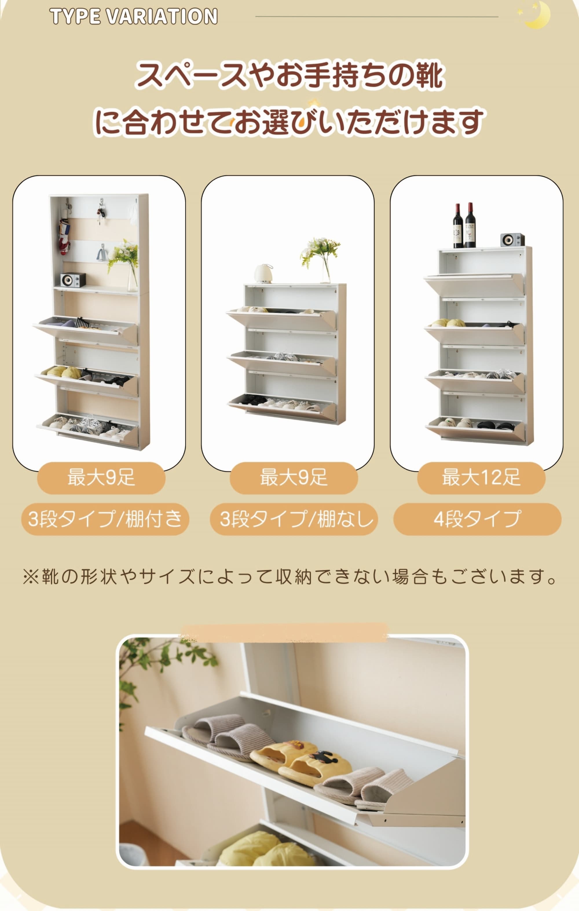 シューズボックス スリム 薄型 奥行1 3段ラック 3段ラック-棚付き 4段ラック 幅65cm 幅80cm