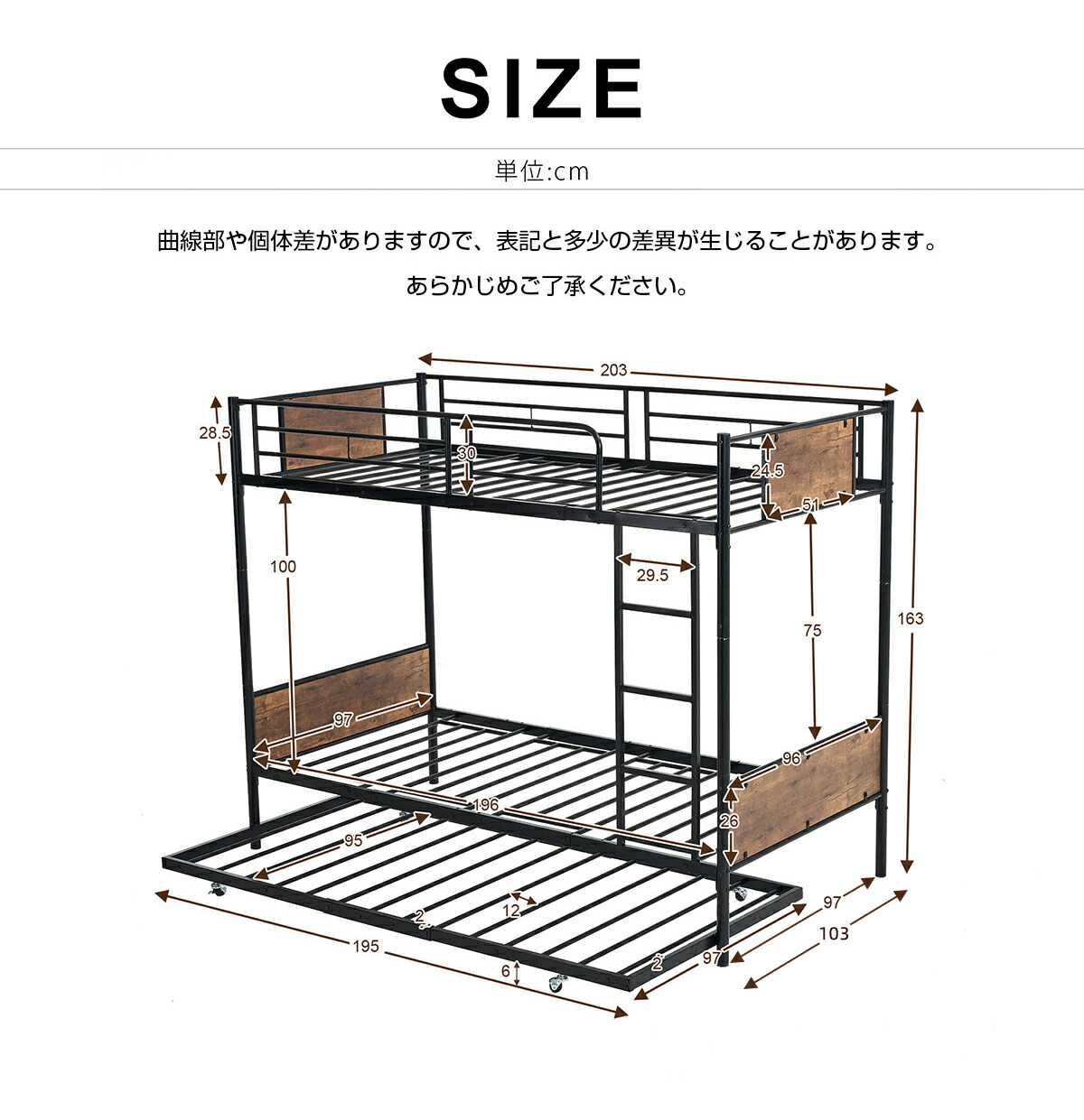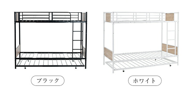 三段ベッドシングル パイプベッド 耐荷 ホワイト ブラック