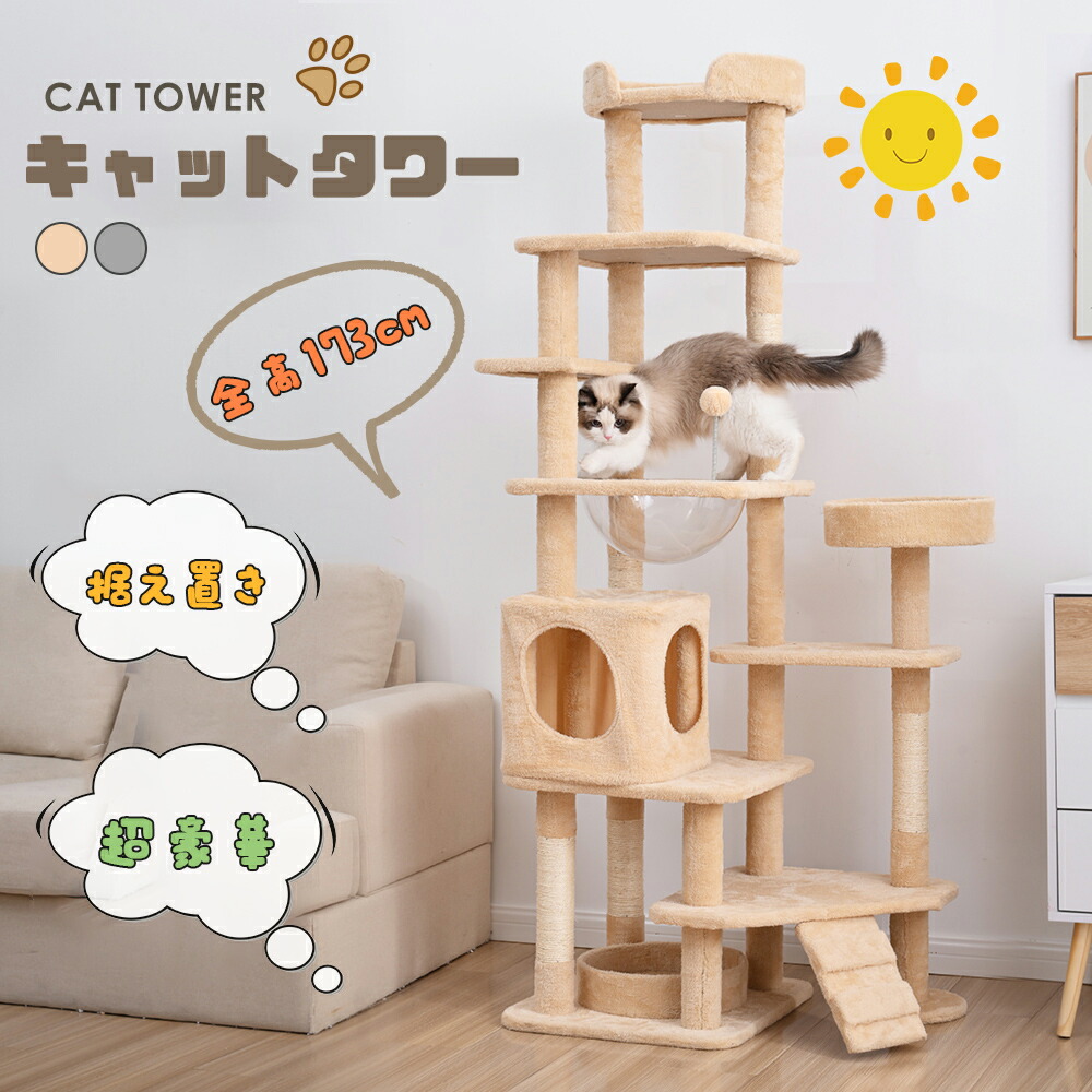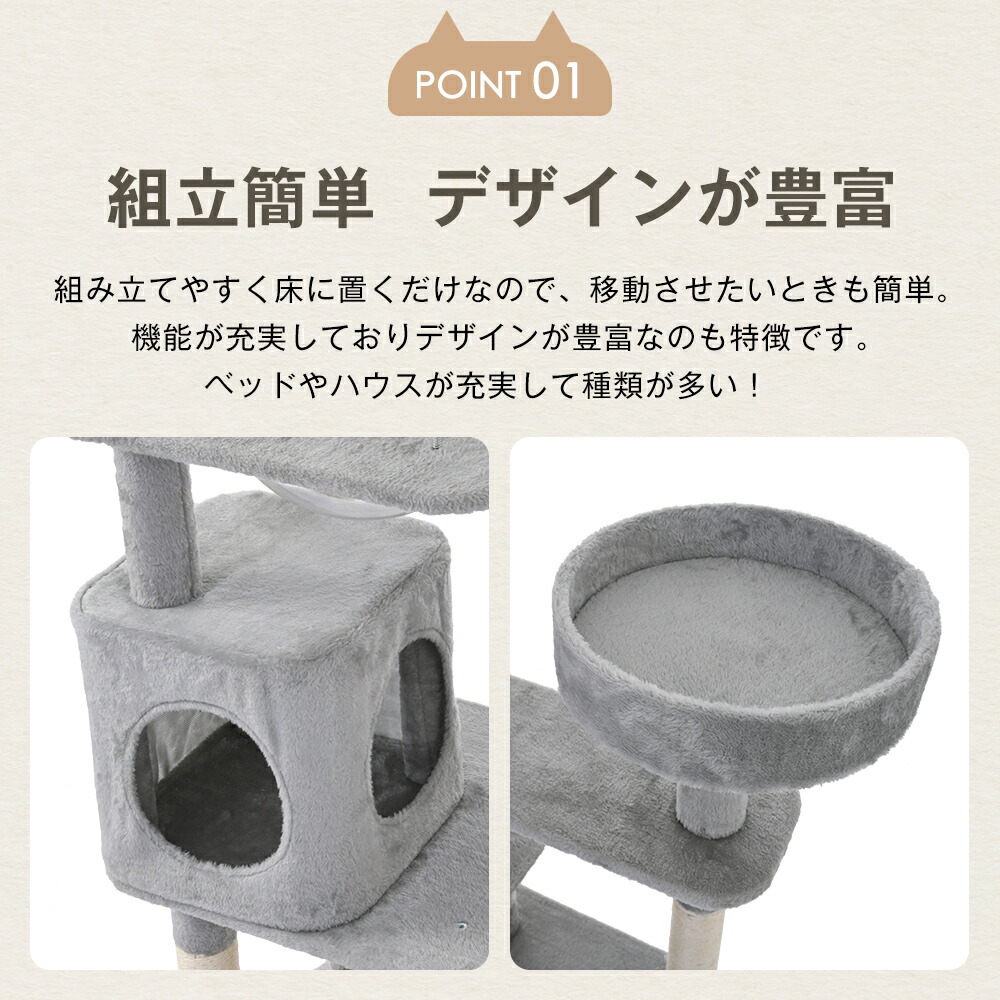キャットタワー 据え置き型 木製 省ス ペット ペットグッズ 大人気! ベージュ グレー