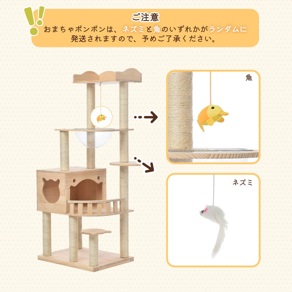 キャットタワー 据え置き 木製 宇宙船付き 多頭飼い 高さ147cm 安定感抜群 猫タワー 展望台 隠れ家 季節問わず 天然木 階段 機能満載 爪とぎ 頑丈 猫ハウス 上りやすい クリアボ 省スペース