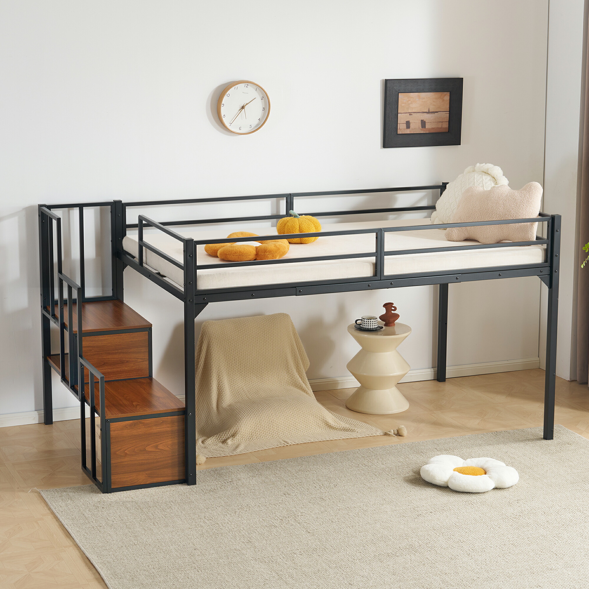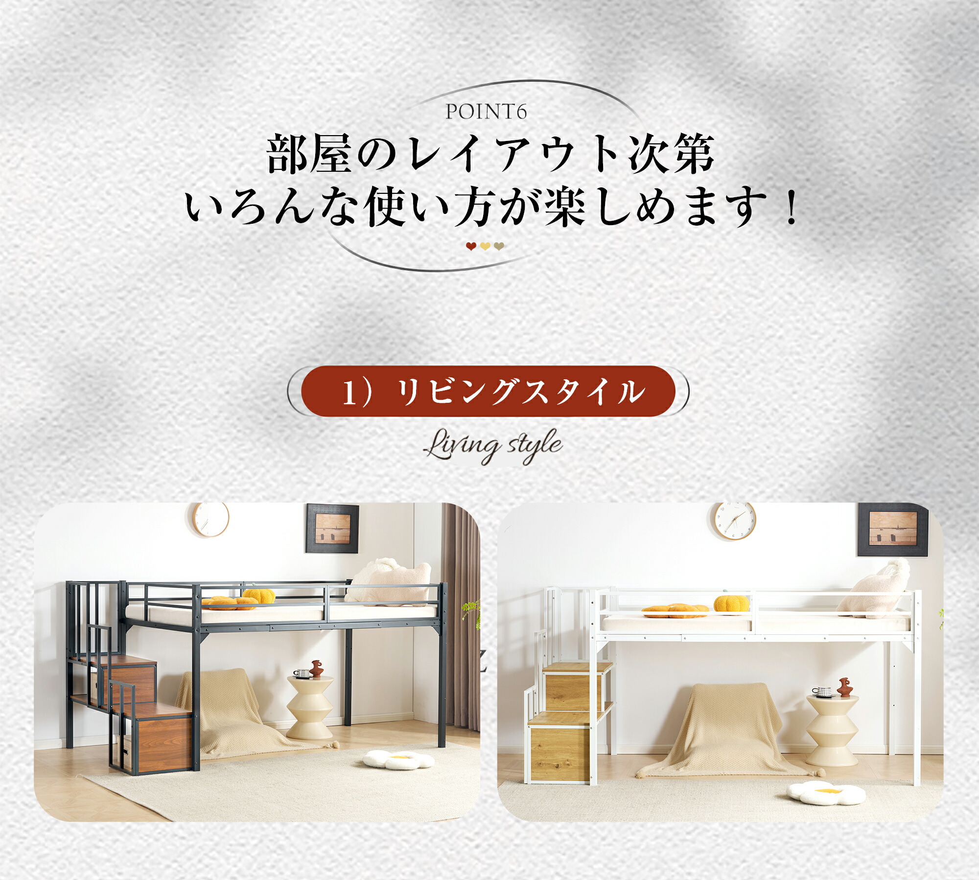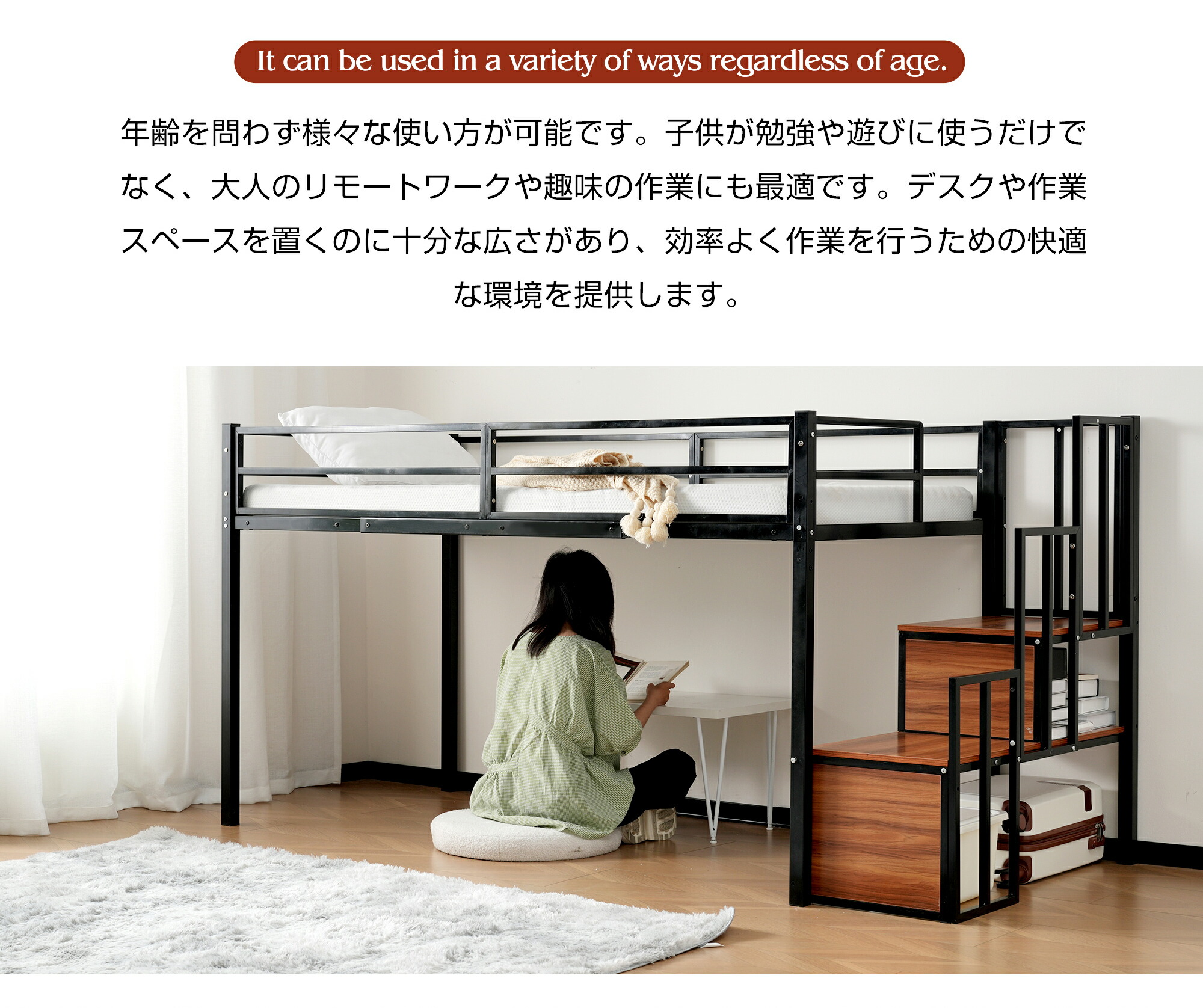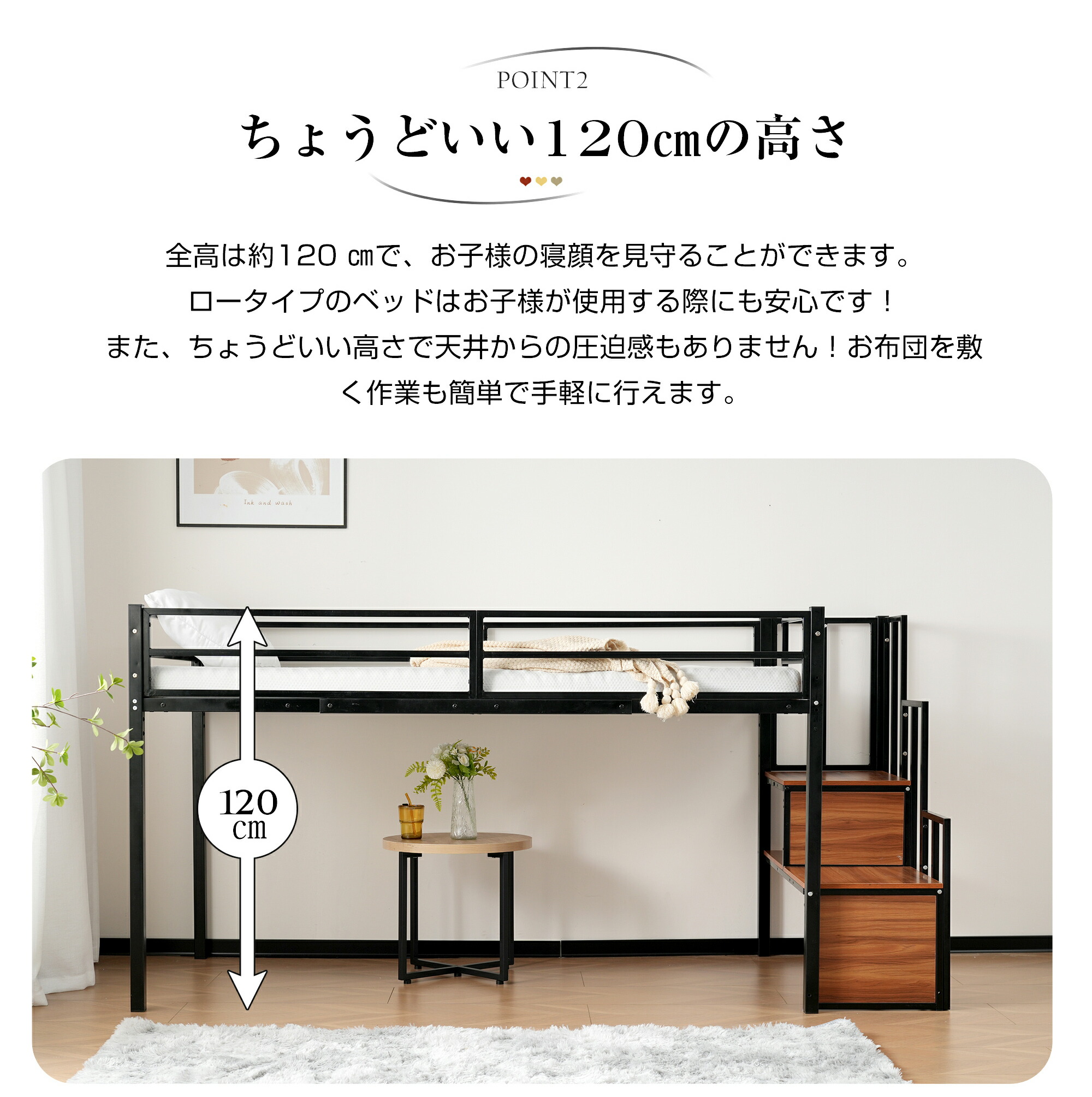 ロフトベッド 階段付き パイプベッド シングル セミダブル ブラック ホワイト