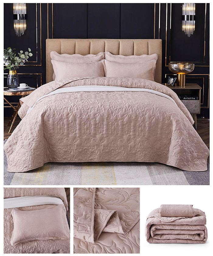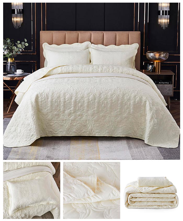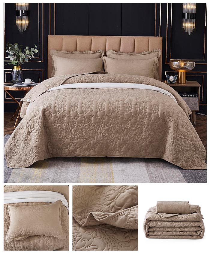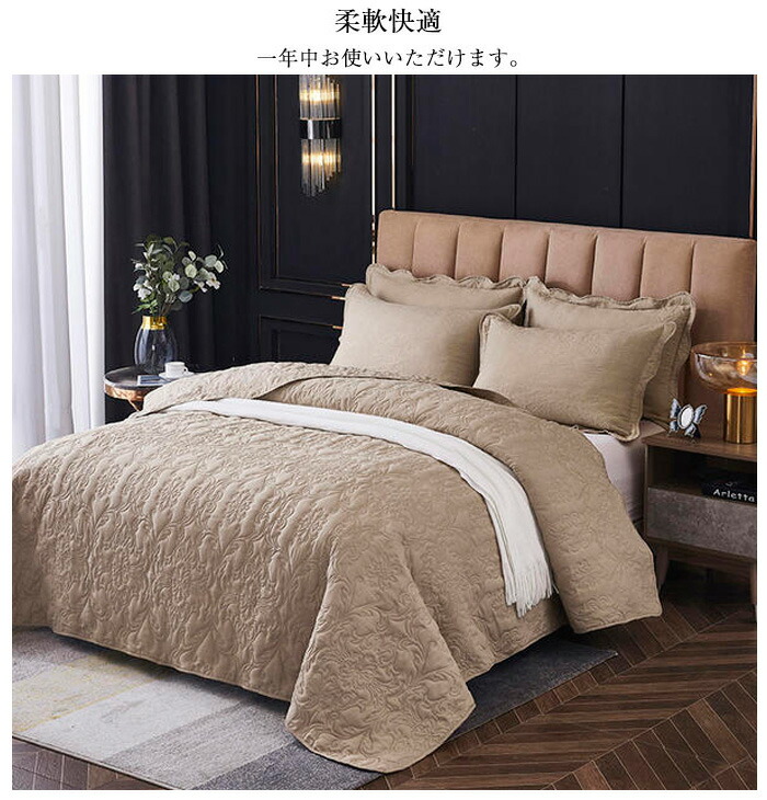 ベッドカバー キルト キルティング 綿 インテリア 寝具 収納 早い者勝ち 220*240cm・3点セット 枕カバー(2枚) ベッドカバー・単品 (220×240cm) コーヒー グリーン クリーム あずき色 グレー キャメル