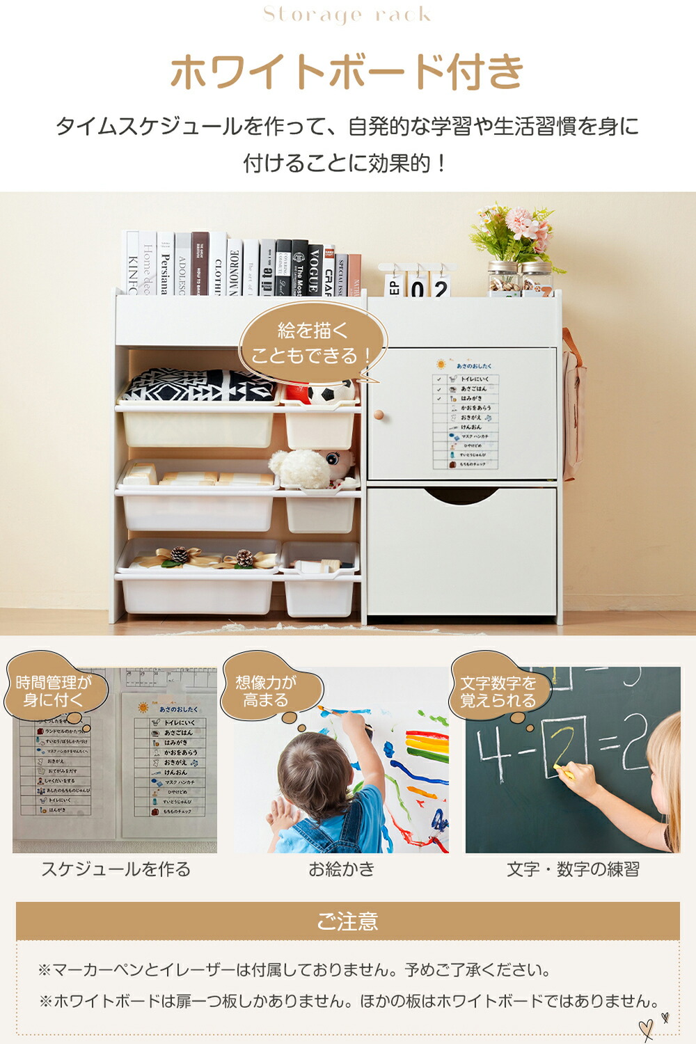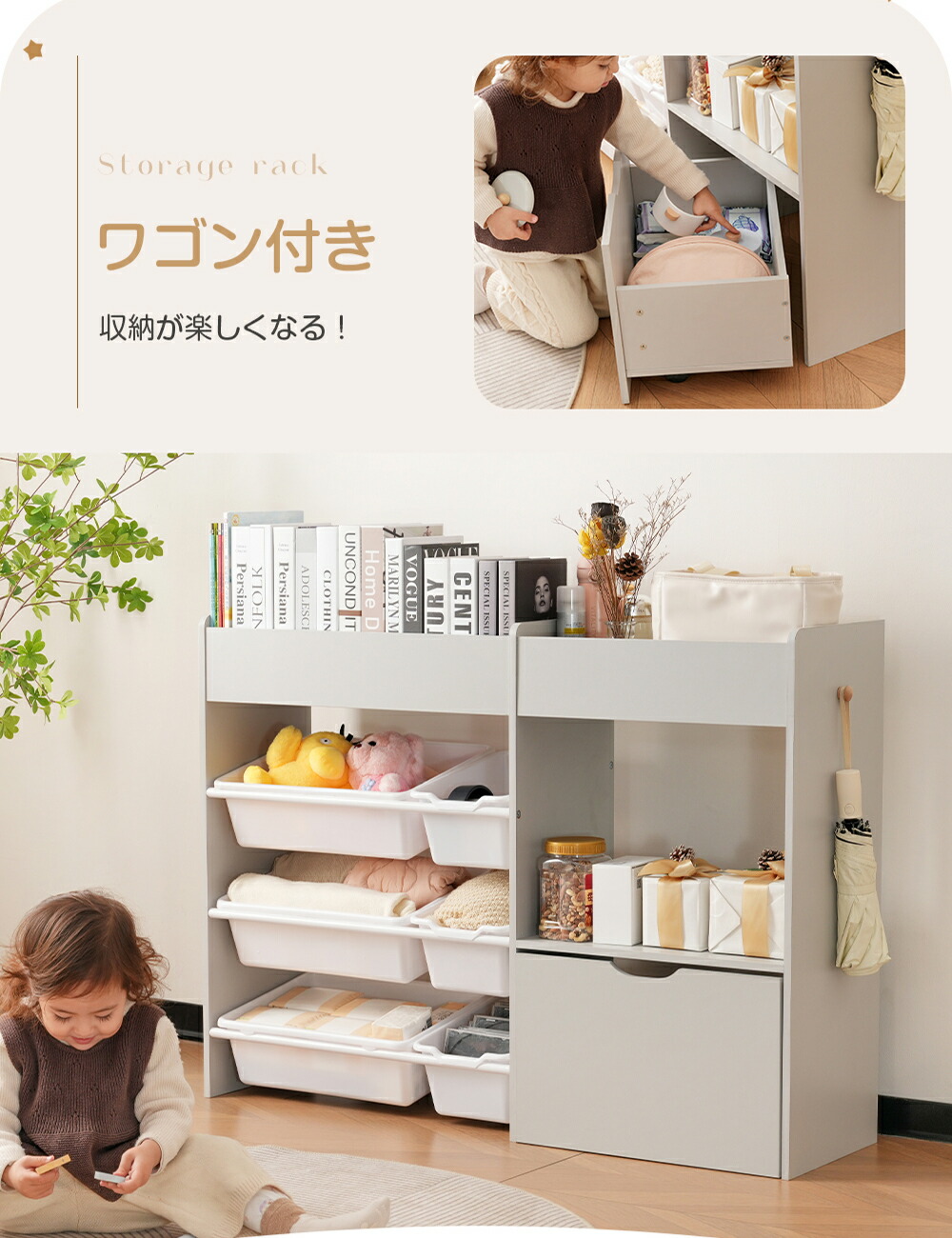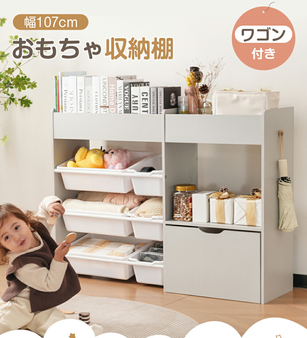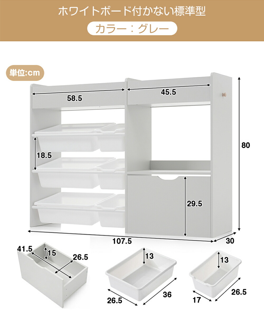 おもちゃ収納 ラック コンパクト 木製 【標準型】ホワイトボードなし 【新型】ホワイトボード付き グレー ホワイト