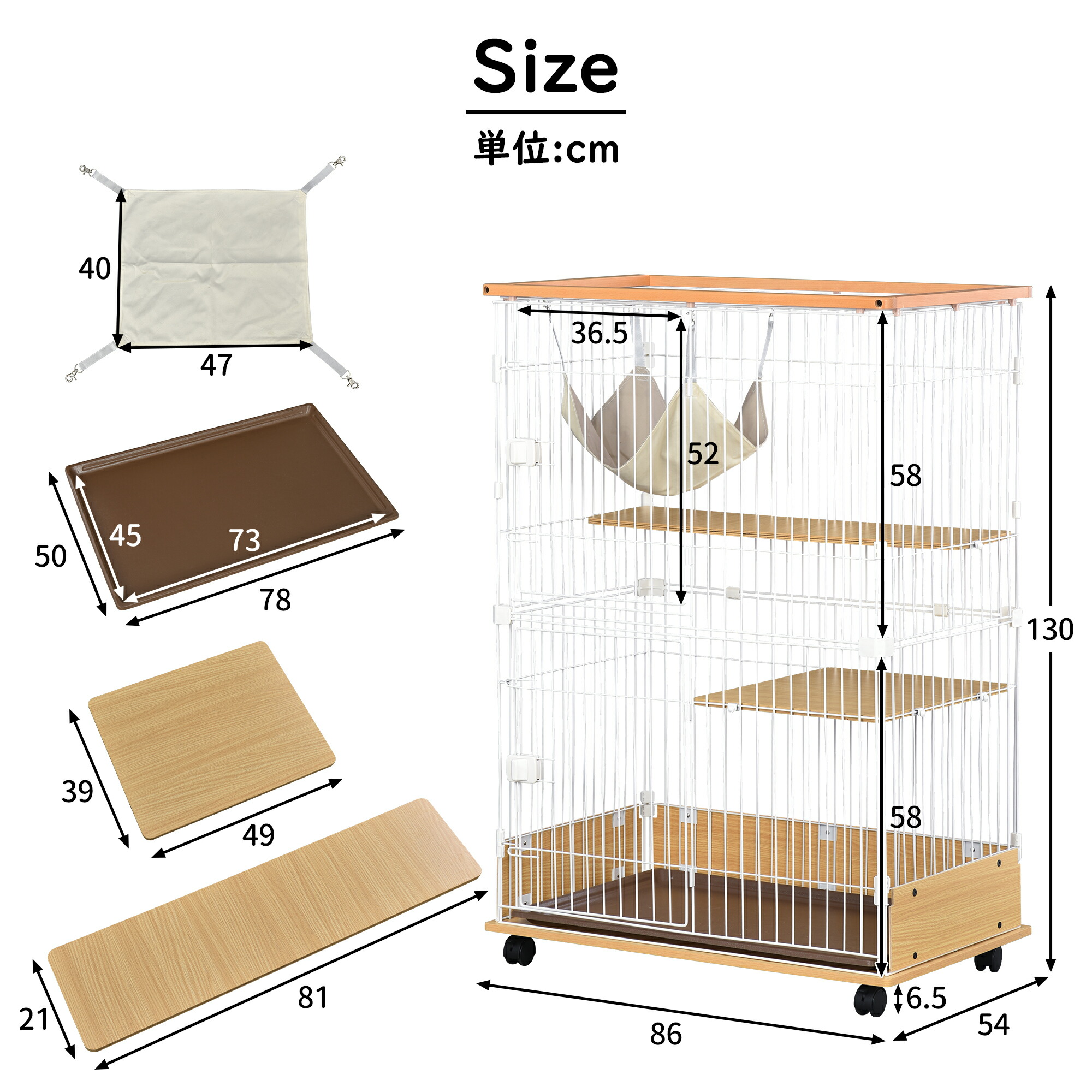 猫 ケージ 130cm キャットケージ ドア付き ロック付き 木製 二段 ナチュラル 1段2段可能 ハンモック付き キャスター付 キャットハウス 保護 脱走防止 おしゃれ 留守番