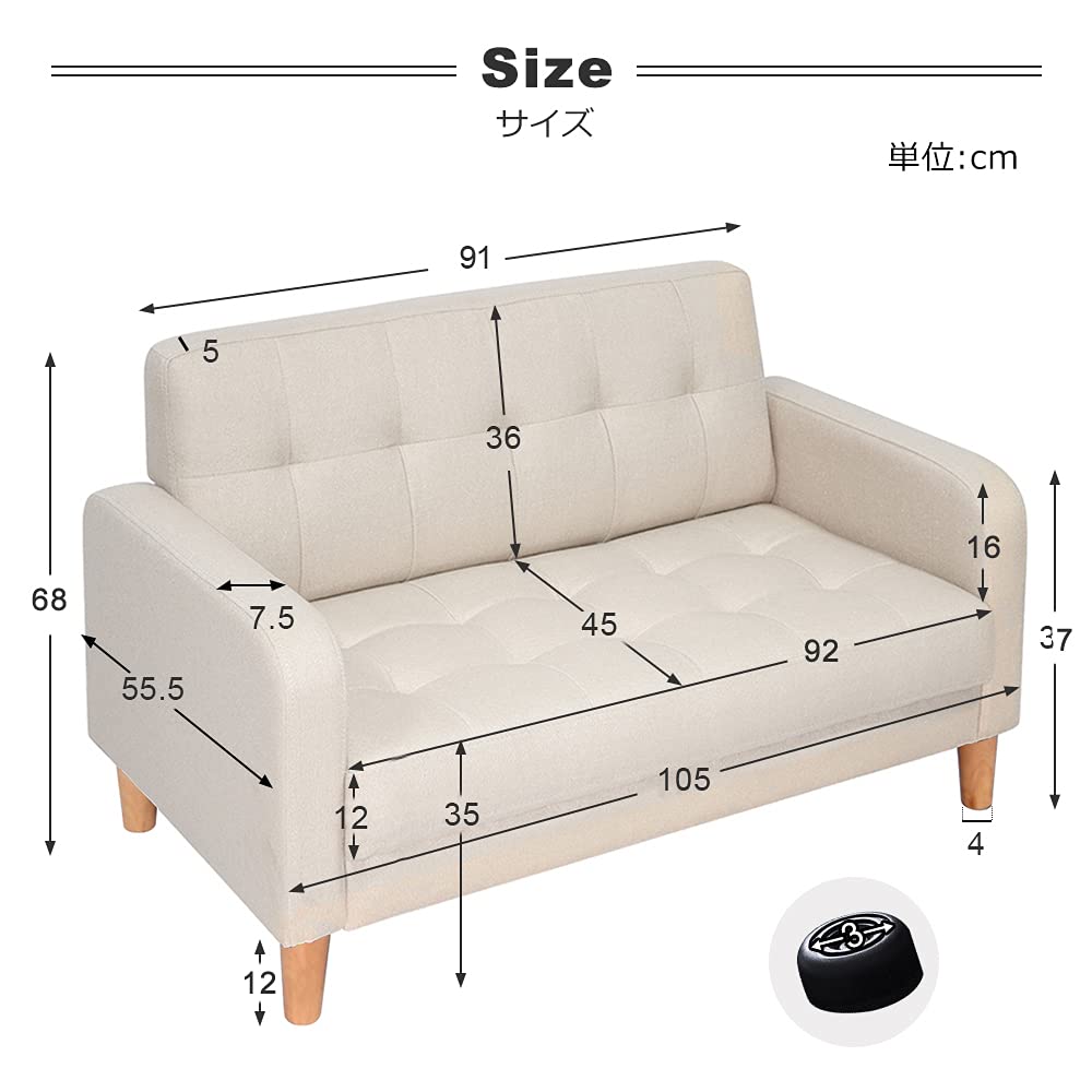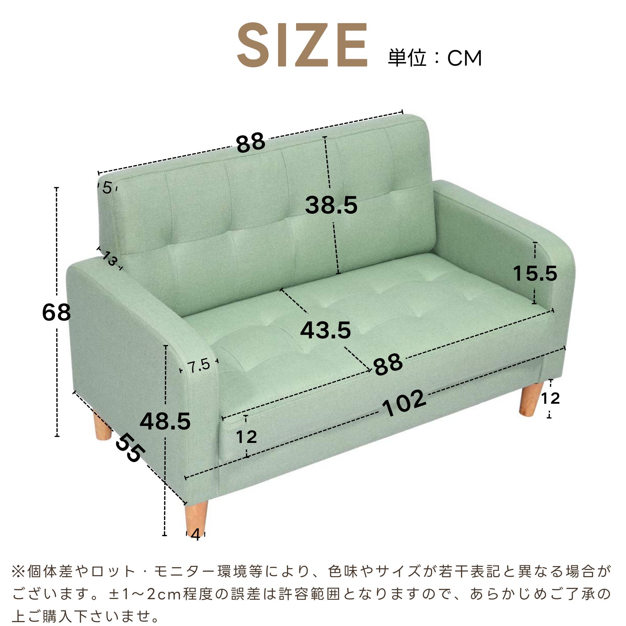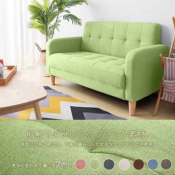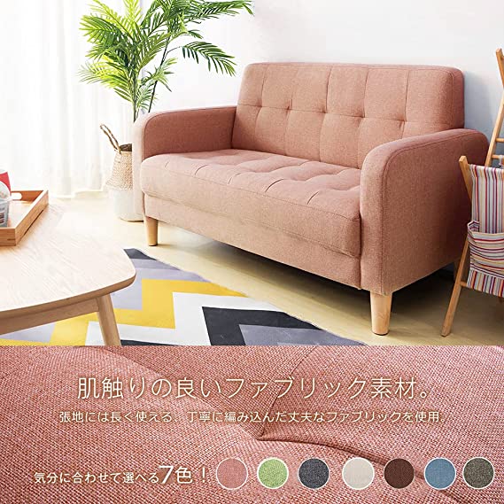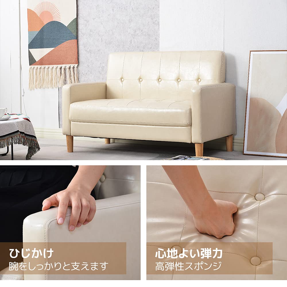 ソファー 2人掛け 肘付き 天然木脚 ベージュ グレー ネイビー ライトグレー ブラウン ピンク ベージュPVC ブラックPVC グリーン