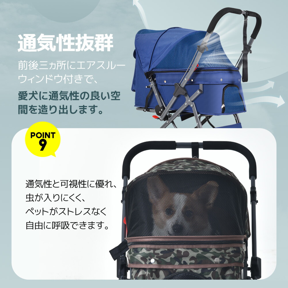 ペットカート 対面式 折りたたみ 多頭用 中型犬 小型犬 犬カート 4輪 ストッパー付き 軽量 組立簡単 工具不要 収納 ドッグカート ペットバギー カート ペット用 犬猫兼用 猫 高評価 キャリー