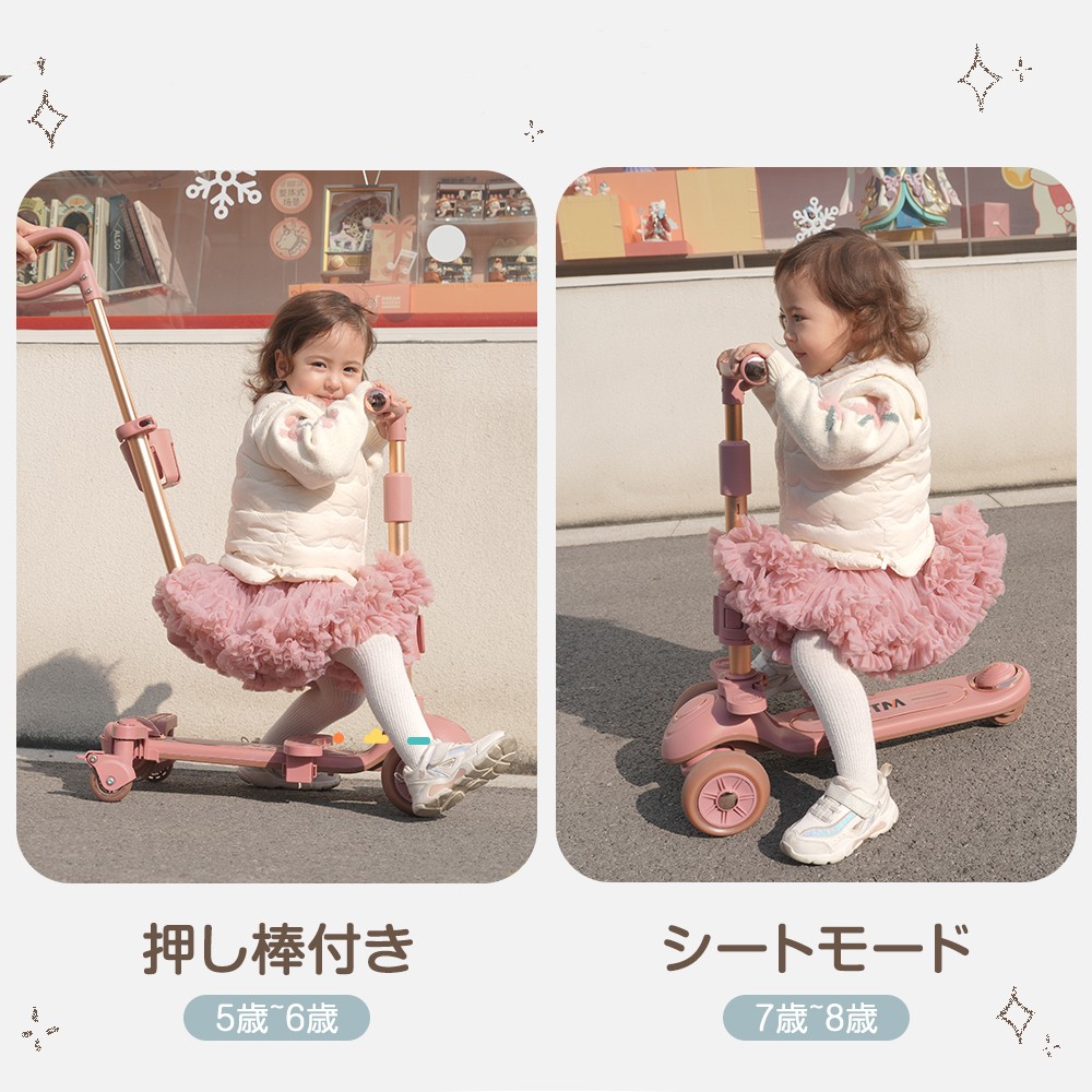キックボード 子供用 3輪 5in1 スポーツ アウトドア 新登場! グリーン ベージュ×ブラウン ピンク×ブラウン グレー