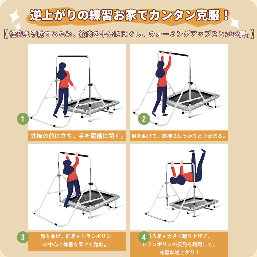鉄棒 トランポリン 室内 屋外 BTM てつぼう さか上がり 耐荷重70kg 折りたたみ 有酸素運動 健康器具 マルチジム懸垂マシン 高さ4段階調整 チンニング 子供用 一年保証 クリ 全身ストレッチ