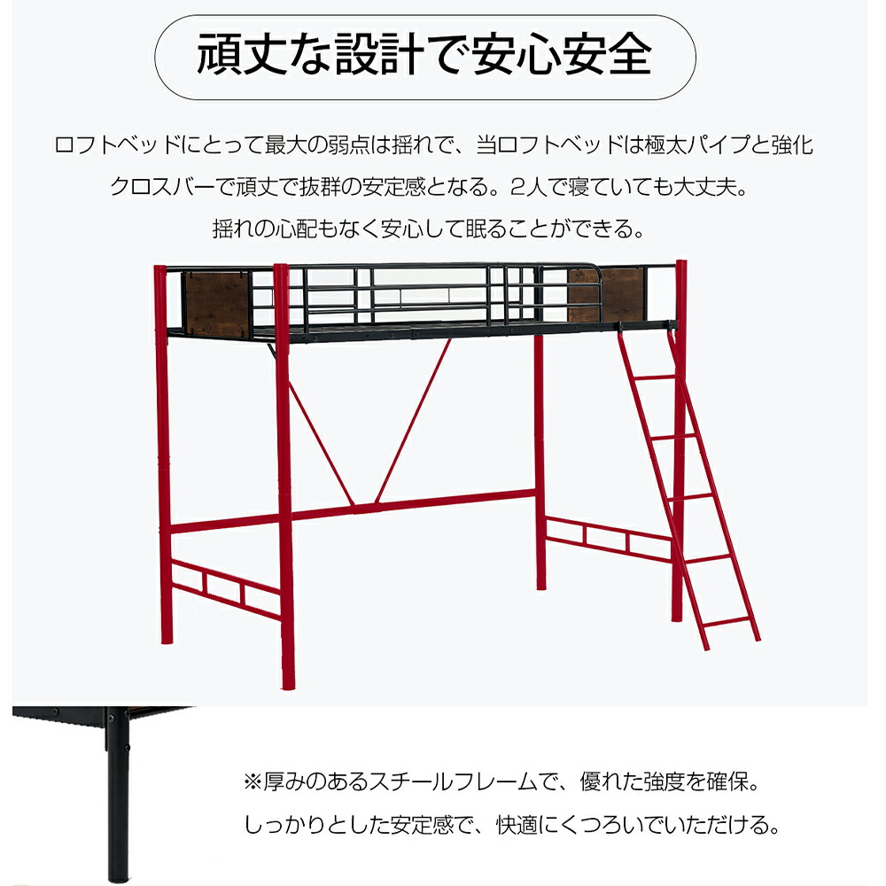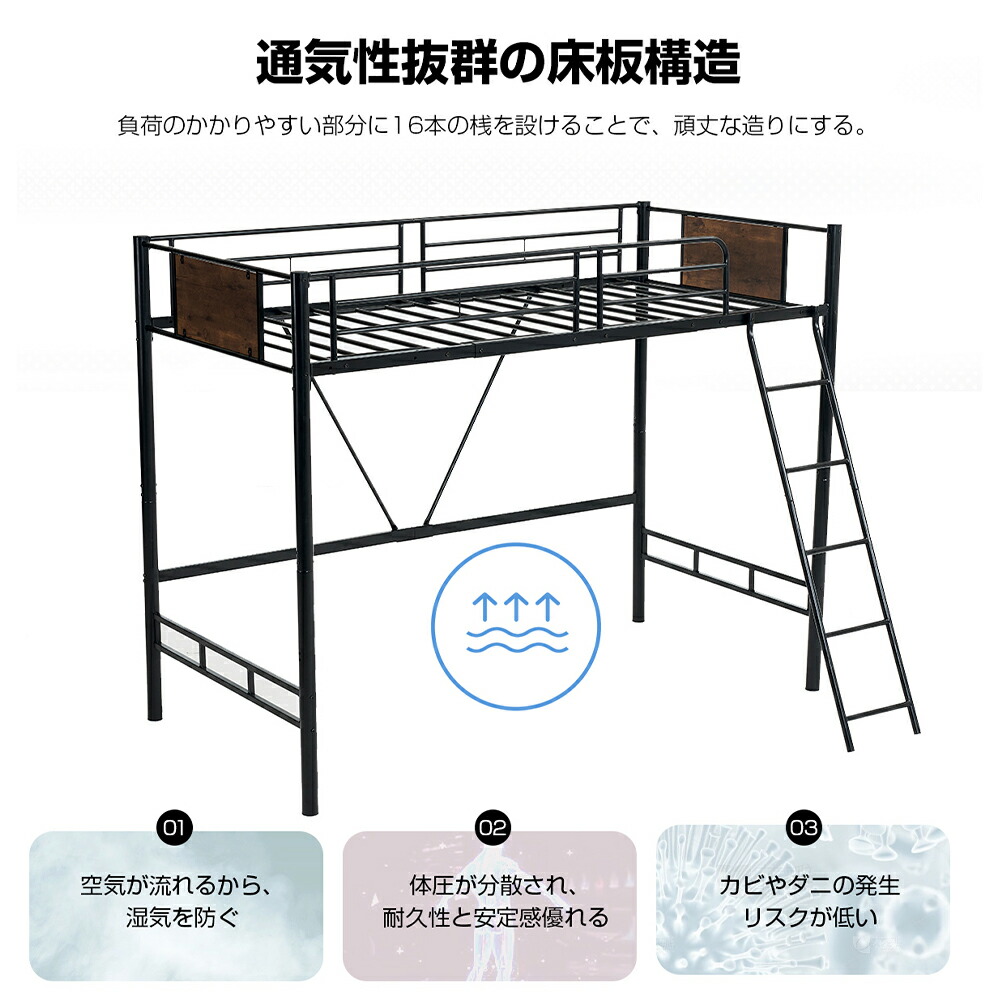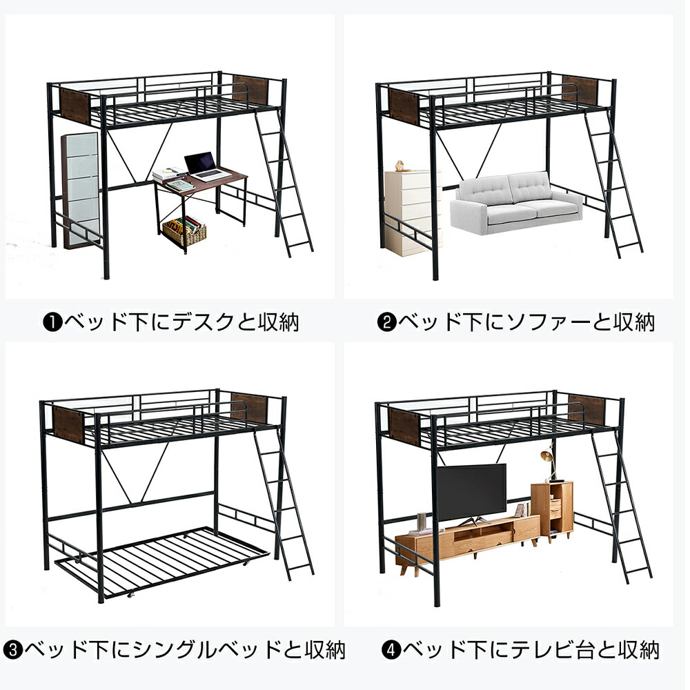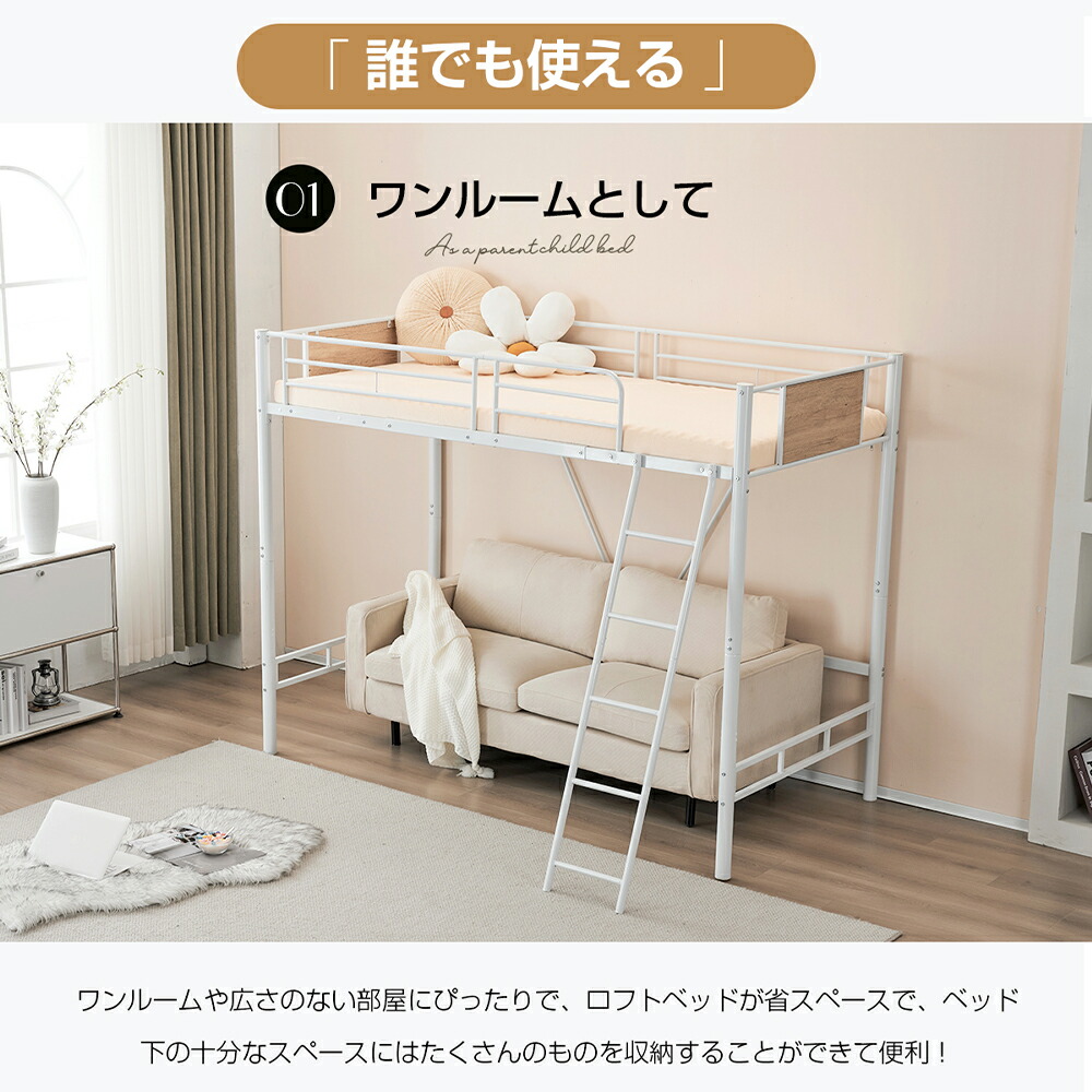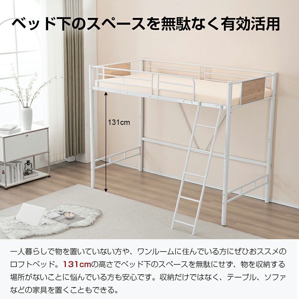 ロフトベッド パイプベッド シングル ホワイト ブラック