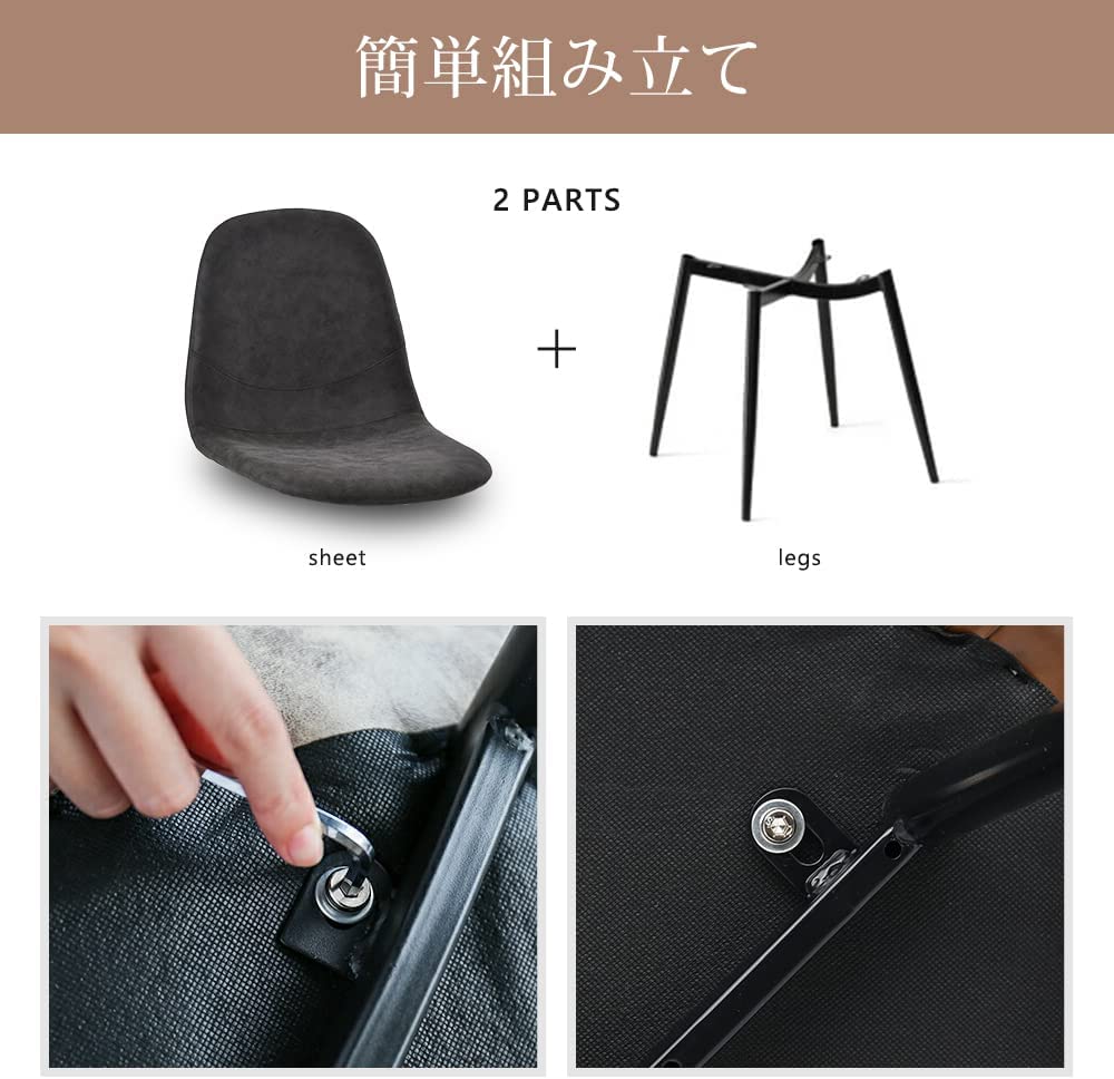 ダイニングチェア レーザー PU座面 ブラウン グレー