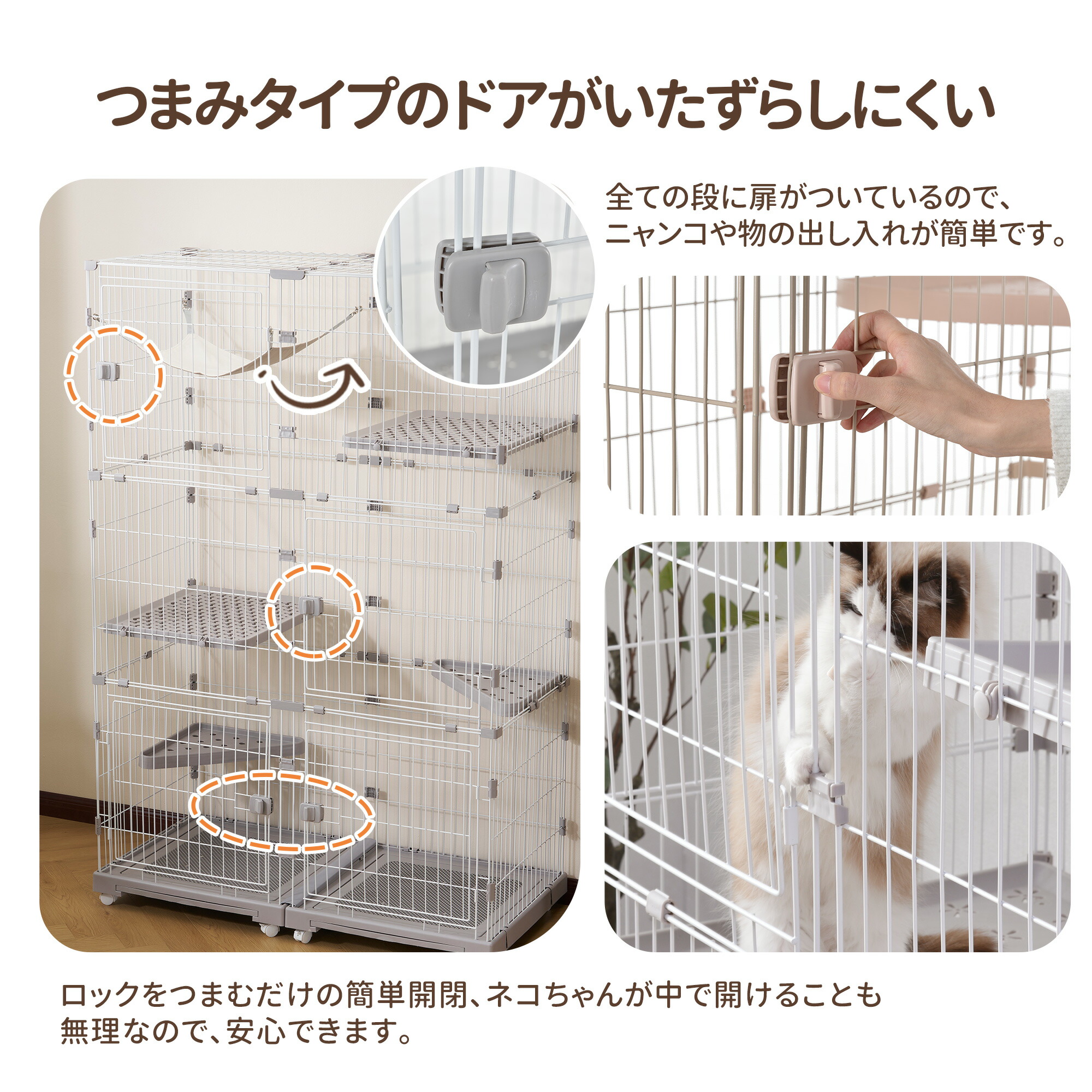 猫 ケージ キャットケージ 3段 幅広 ペット ペットグッズ 特集 グレー ホワイト