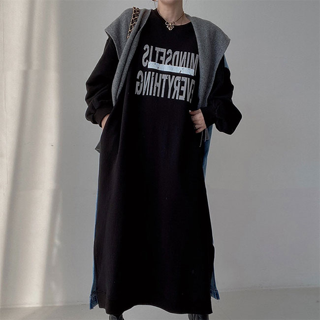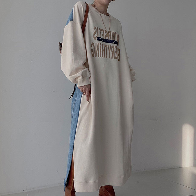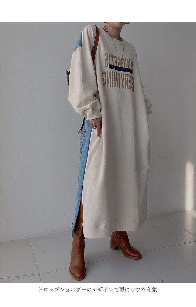 スウェットワンピース 長袖 マキシ丈 レディースファッション 超目玉商品 ブラック グレー ベージュ