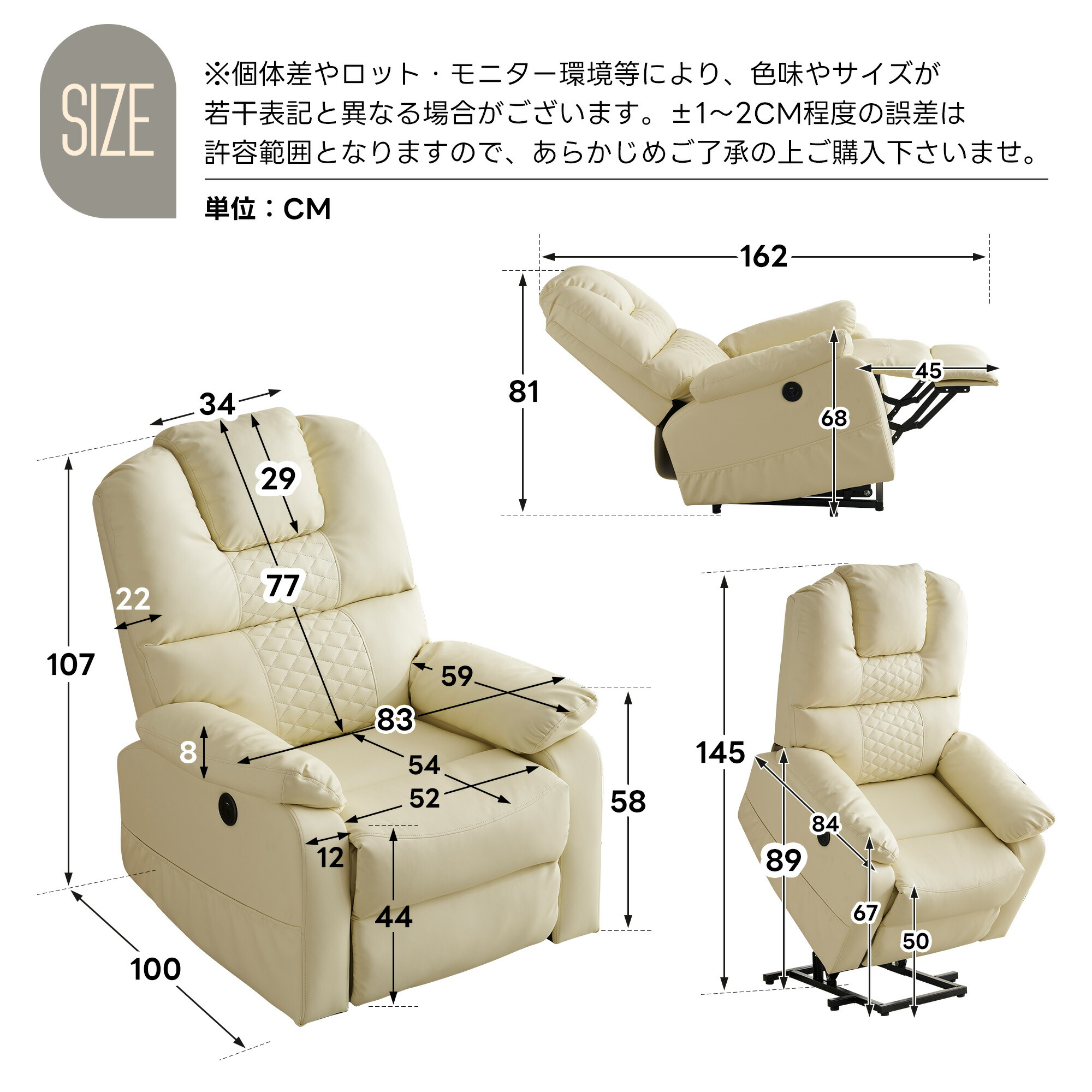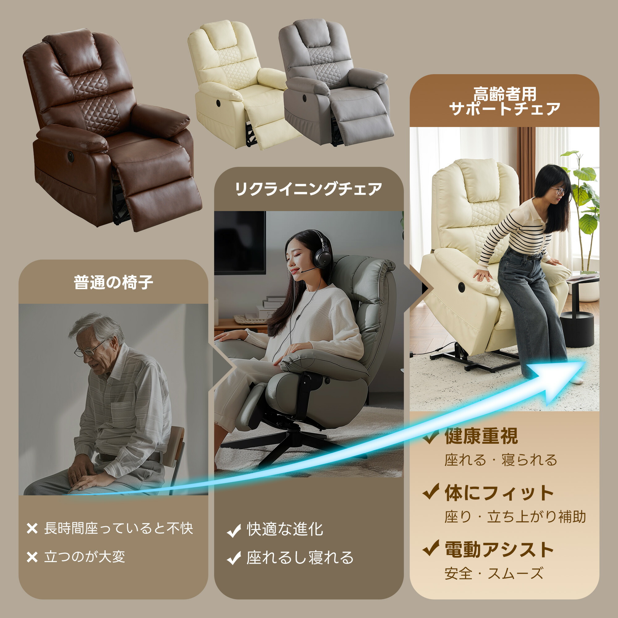 電動リクライニング ソファー 1人掛け ホワイト グレー ブラウン