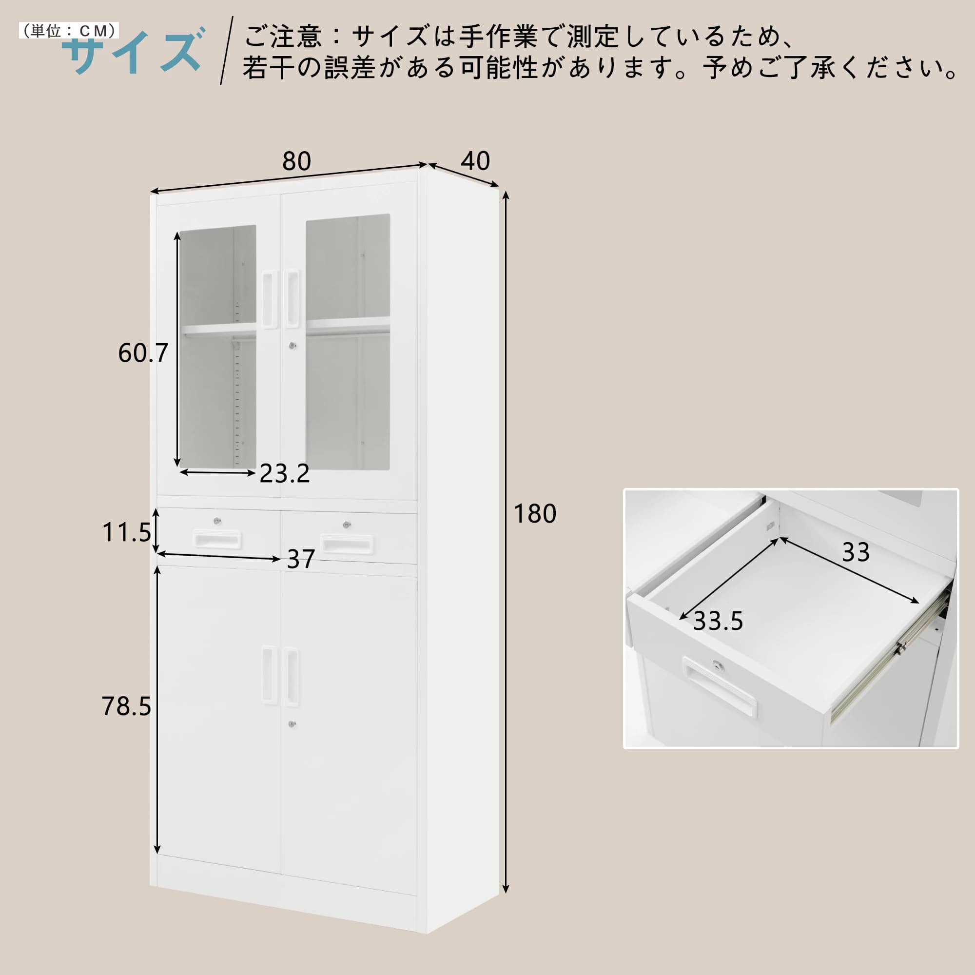 スチール書庫 両開き書庫 キャビネット 引き出し付き 可動棚 A4対応 幅80 高さ180cm 書類保管庫 大容量収納 鍵付き 書庫 多用途 保管庫 書類 収納 物品棚 オフィス 業務用 収納棚