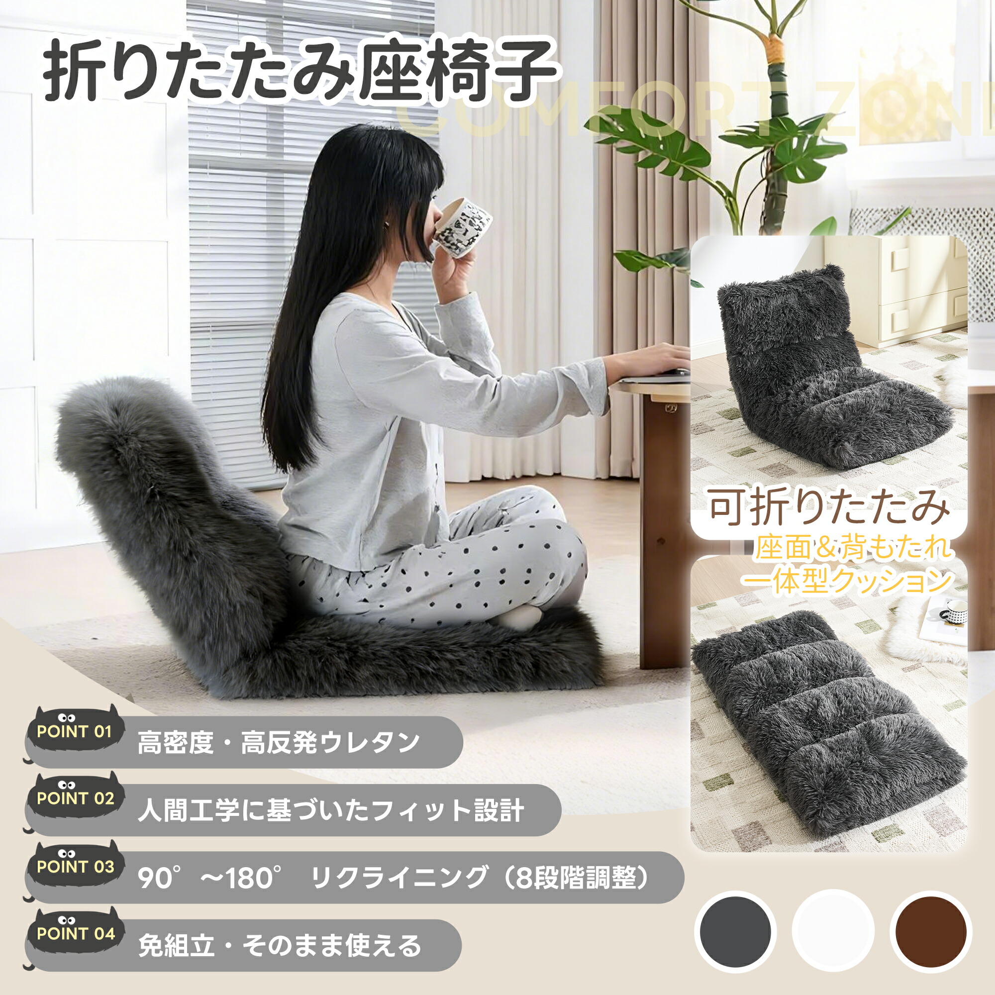座椅子 ふわふわ 折りたたみ 90°~ ホワイト グレー ブラウン