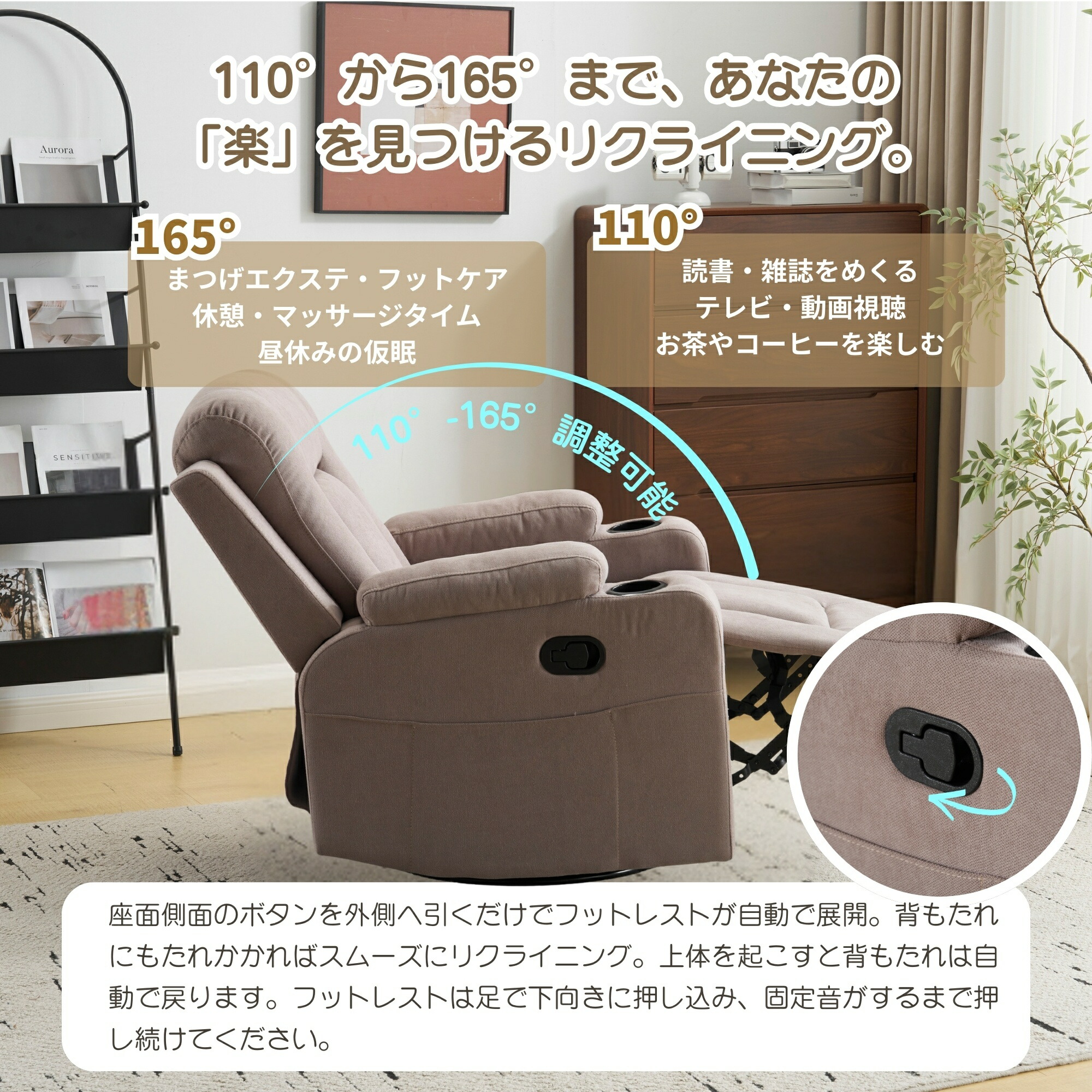 リクライニングソファ 1人掛け 165 ベージュ グレーブラウン ライトグレー