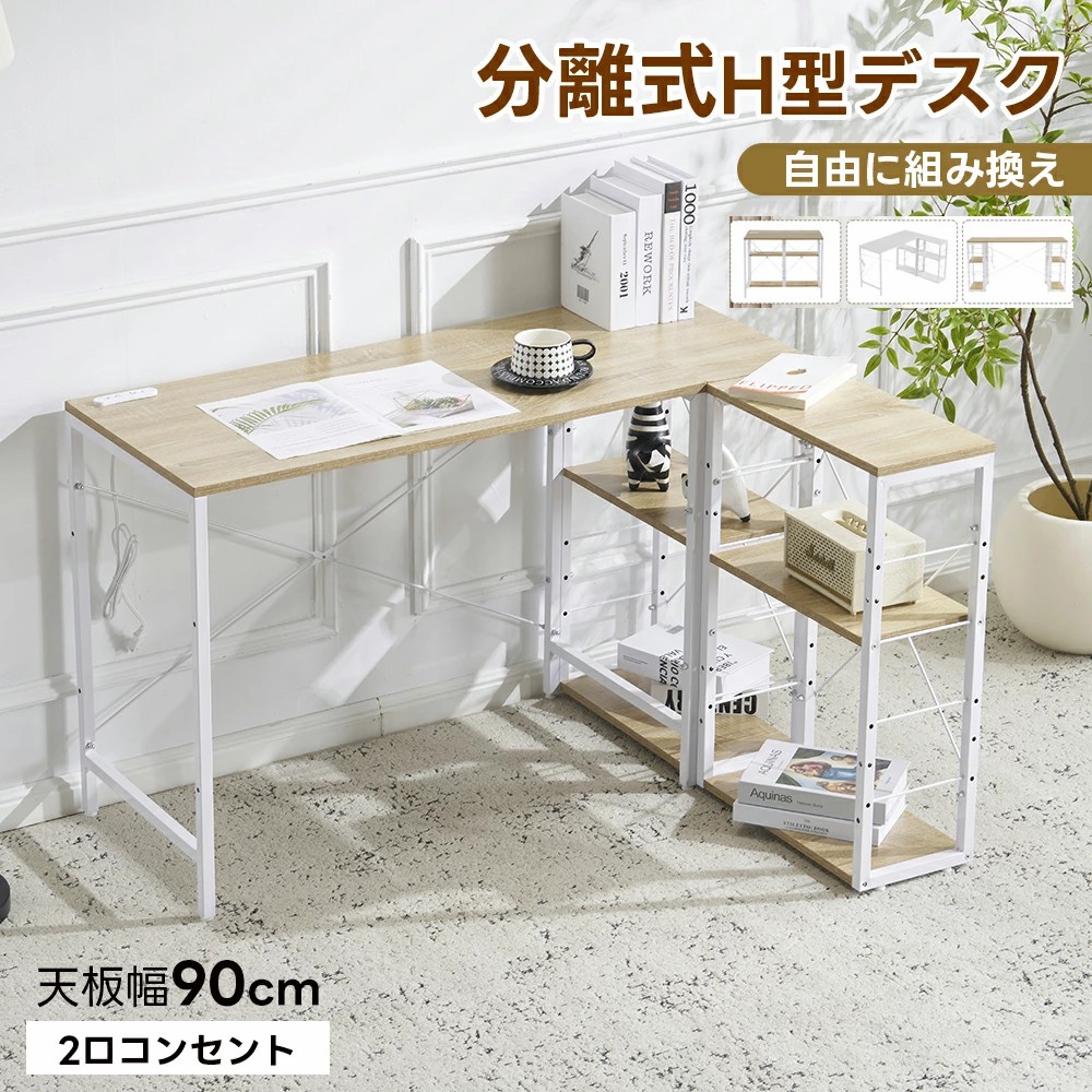 オフィスデスク 分離式H型デスク パソ ホワイト ナチュラル