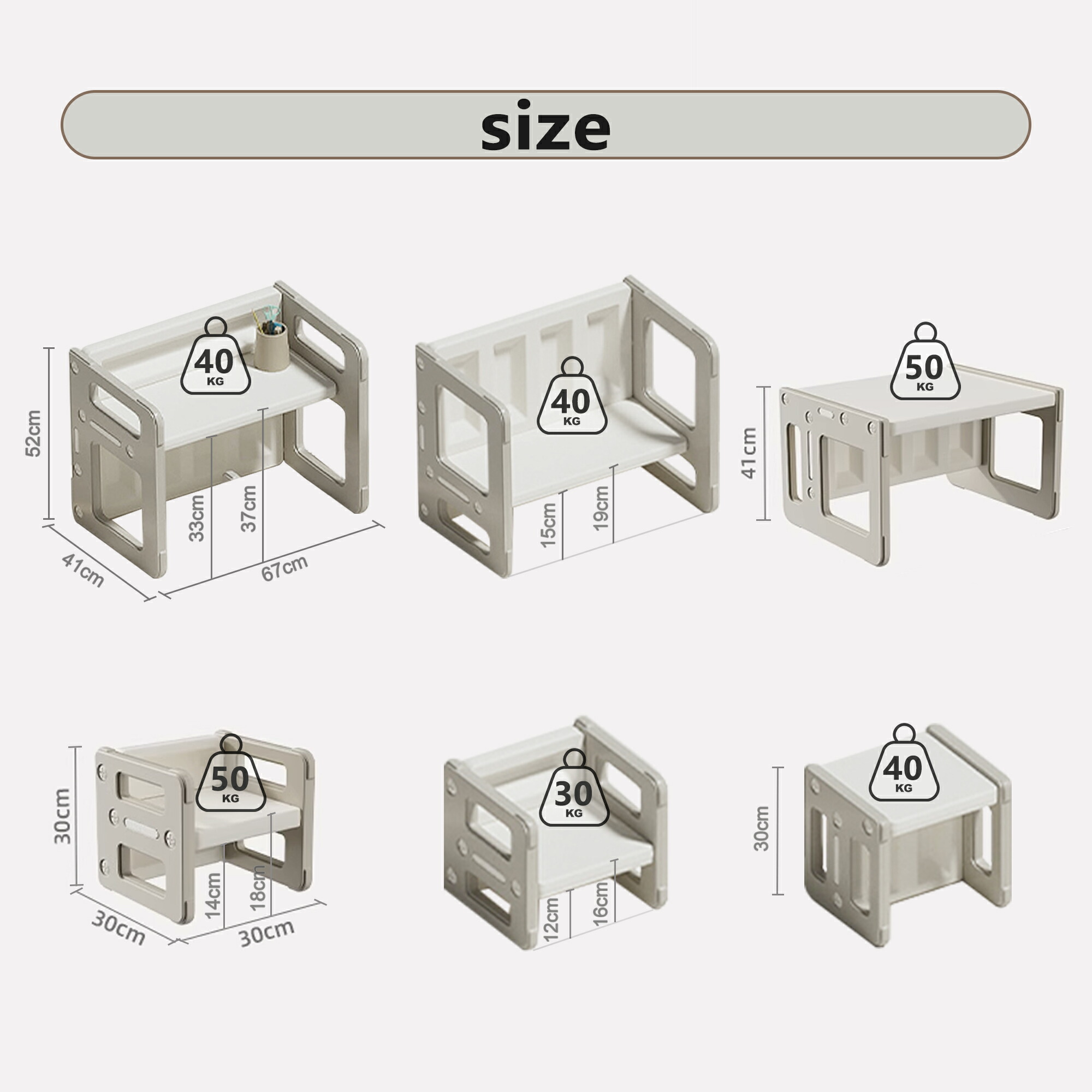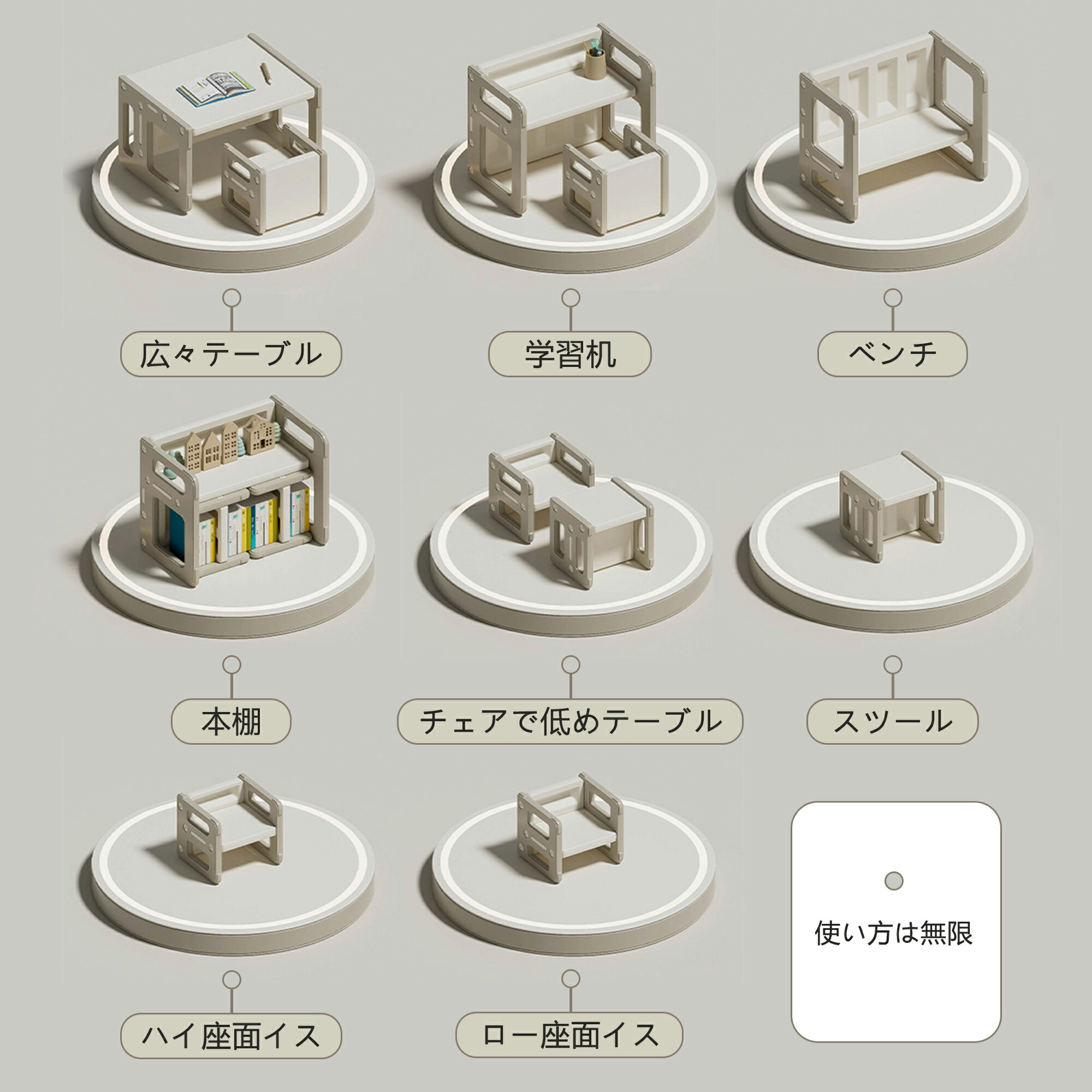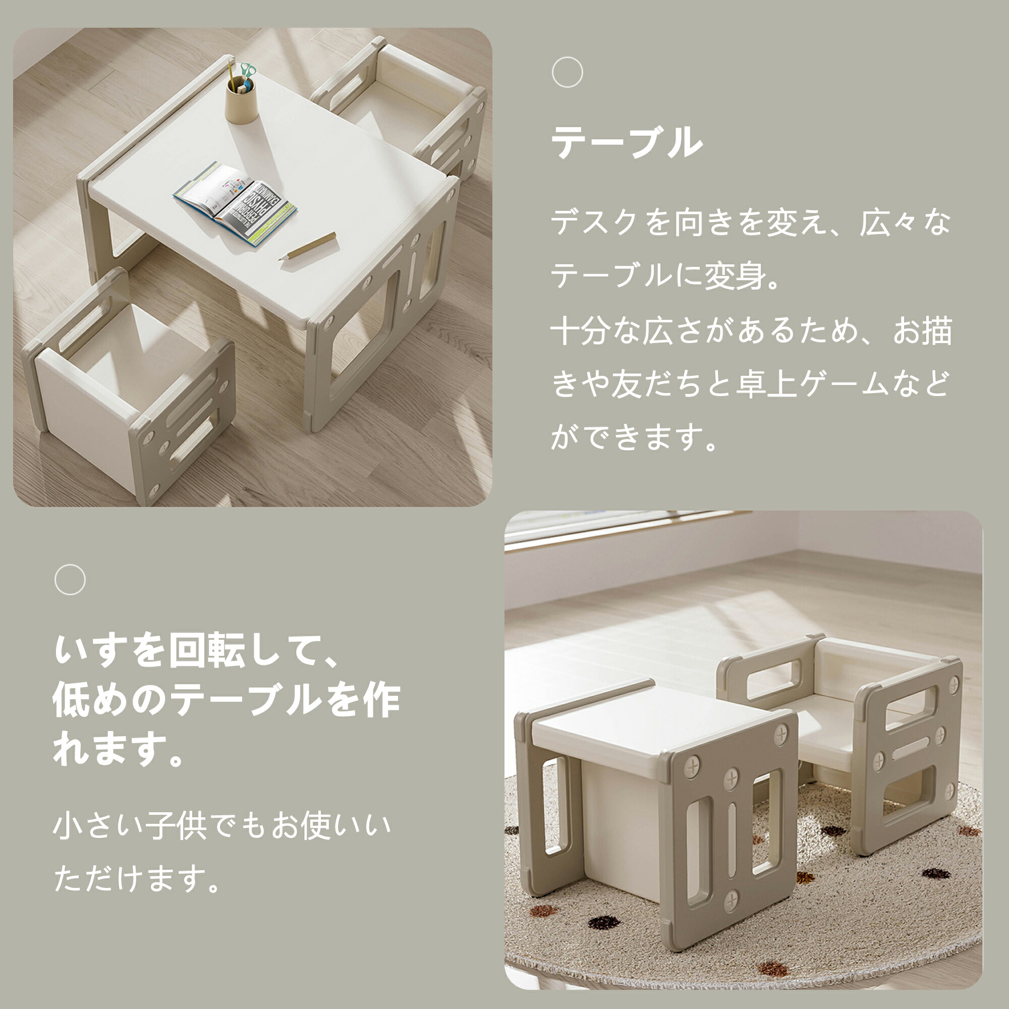 キッズデスク チェア セット 3点セッ カーキ+ホワイト グレー+ホワイト