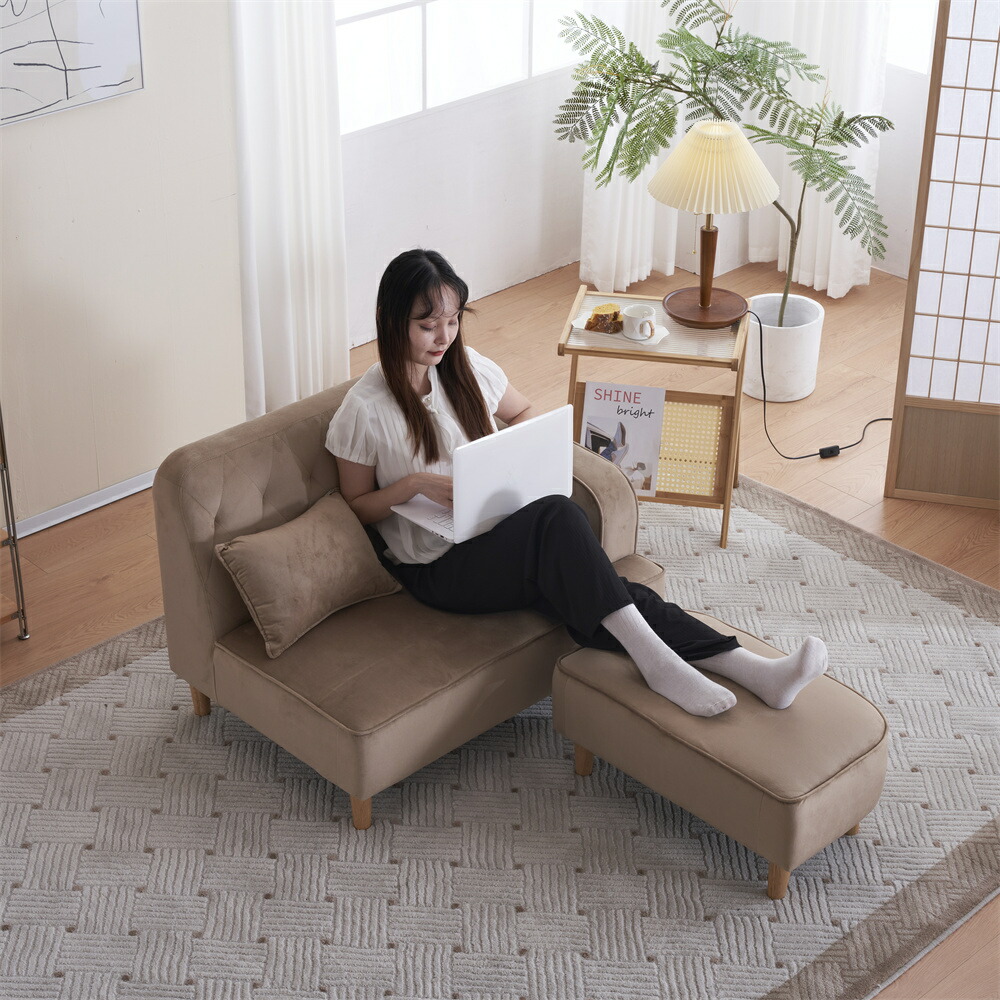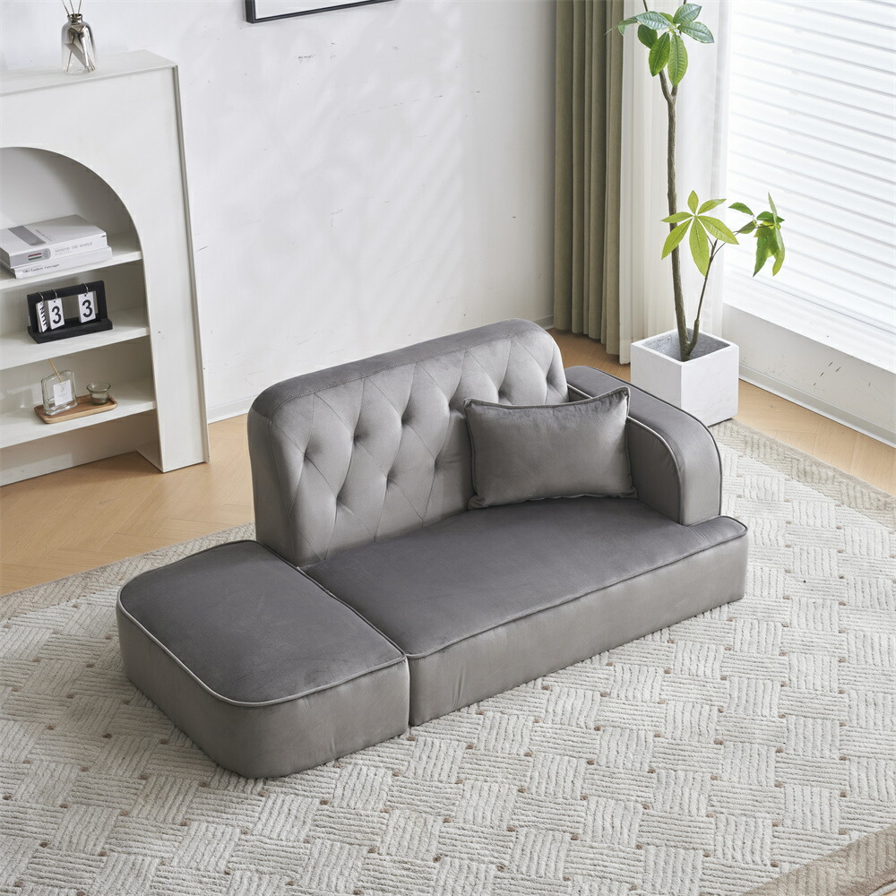 ソファー ソファベッド 2人掛け オットマン付き カウチソファー 2.5人掛け コーナーソファー L字型 ローソファ クッション付き コンパクト リビングソファ ロータイプ ロースタイ 脚取り外し可能