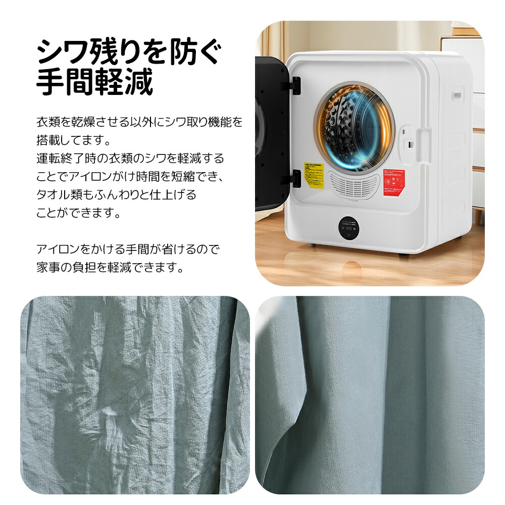衣類乾燥機 小型 4.5kg 小型衣類乾燥機 1人暮らし 除菌 節電 除湿 シワ取り 衣類乾燥 家庭用 1人用 2人用 3人用 ドラム式 コンパクト 布団 湿気 梅雨 花粉 洋服 やさしく乾燥 カビ