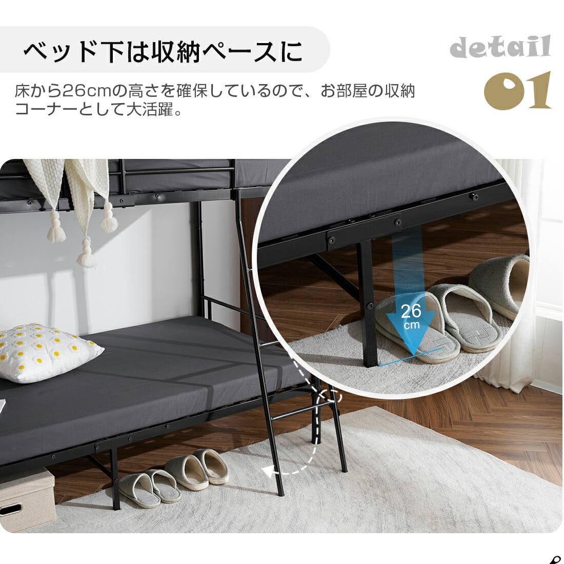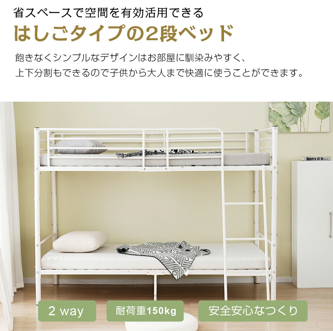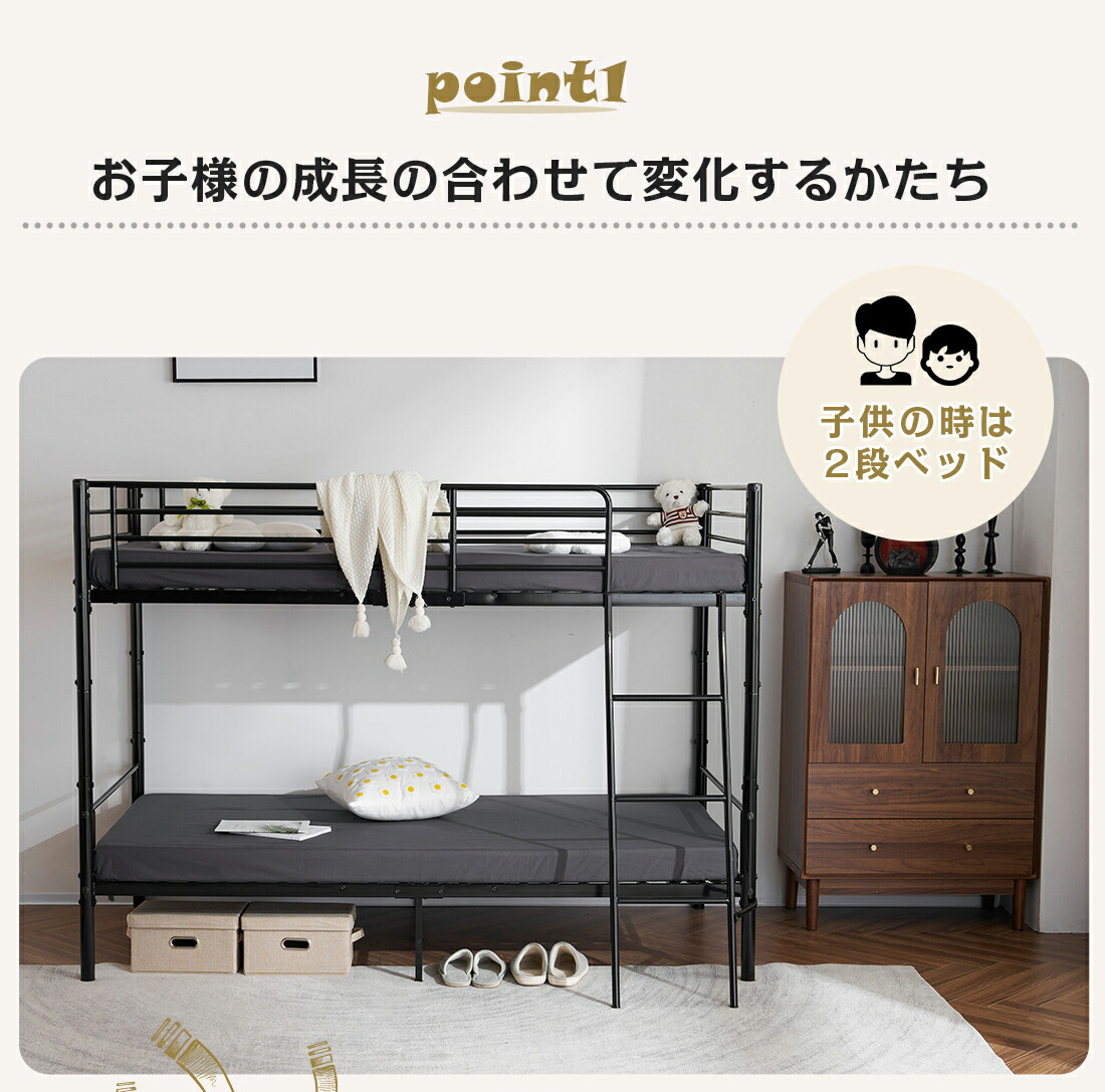 二段ベッド 2段ベッド シングル パイ 【ブラック】 【ホワイト】
