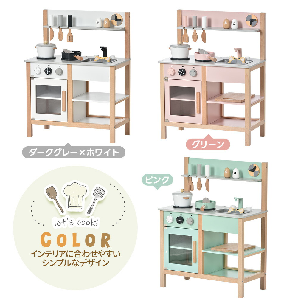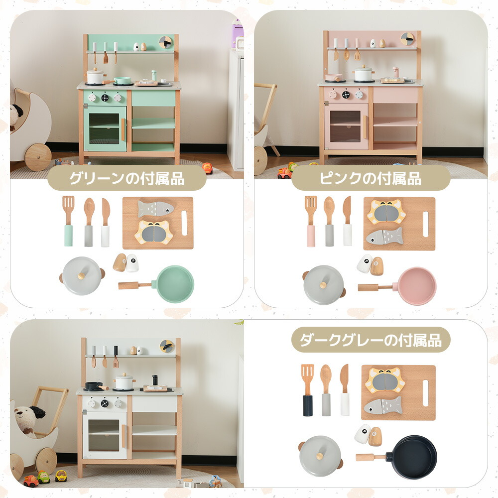 OSJ おままごと キッチン 木製 ま おもちゃ ままごと ごっこ遊びトイ 家事 豊富な品揃え ホワイト ピンク グリーン
