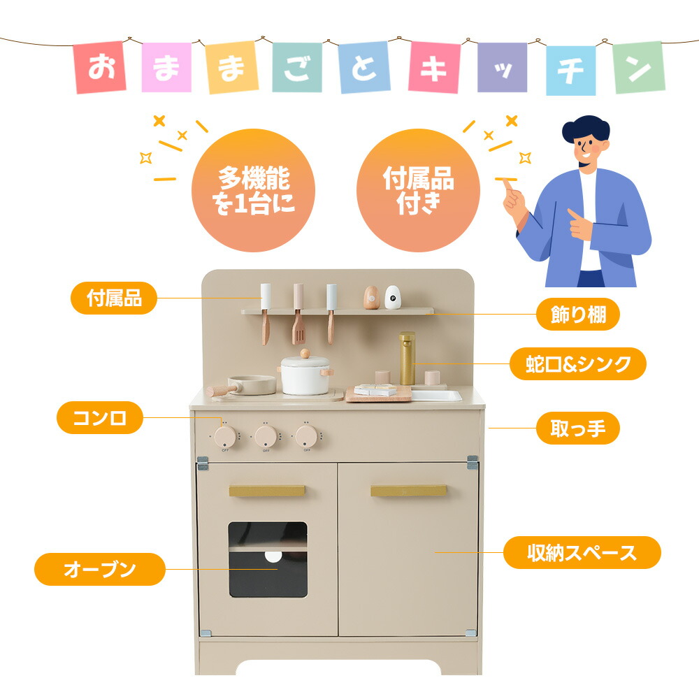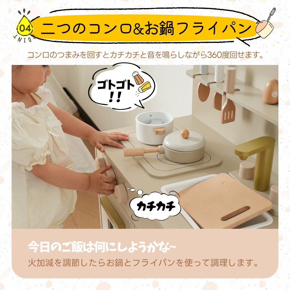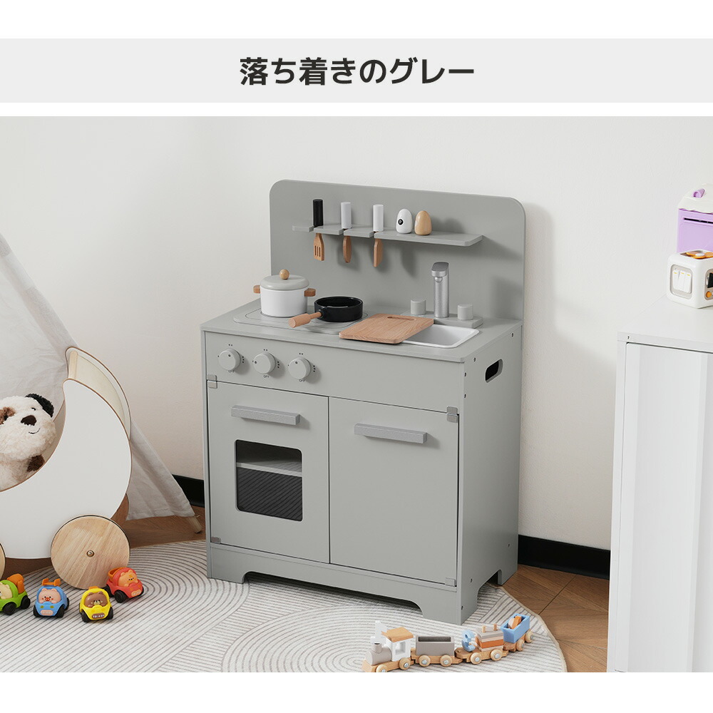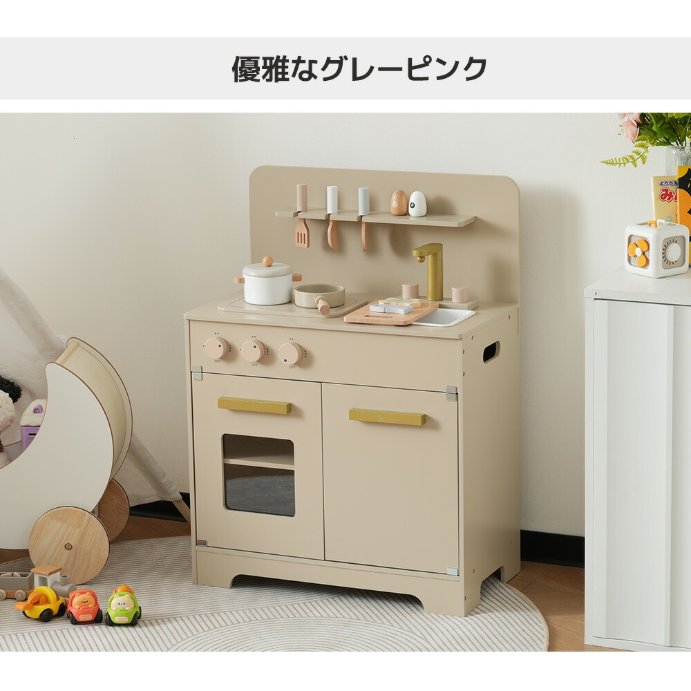 OSJ おままごと キッチン 木製 4 おもちゃ ままごと ごっこ遊びトイ 家事 早い者勝ち グレーピンク グレー ホワイト ピンク