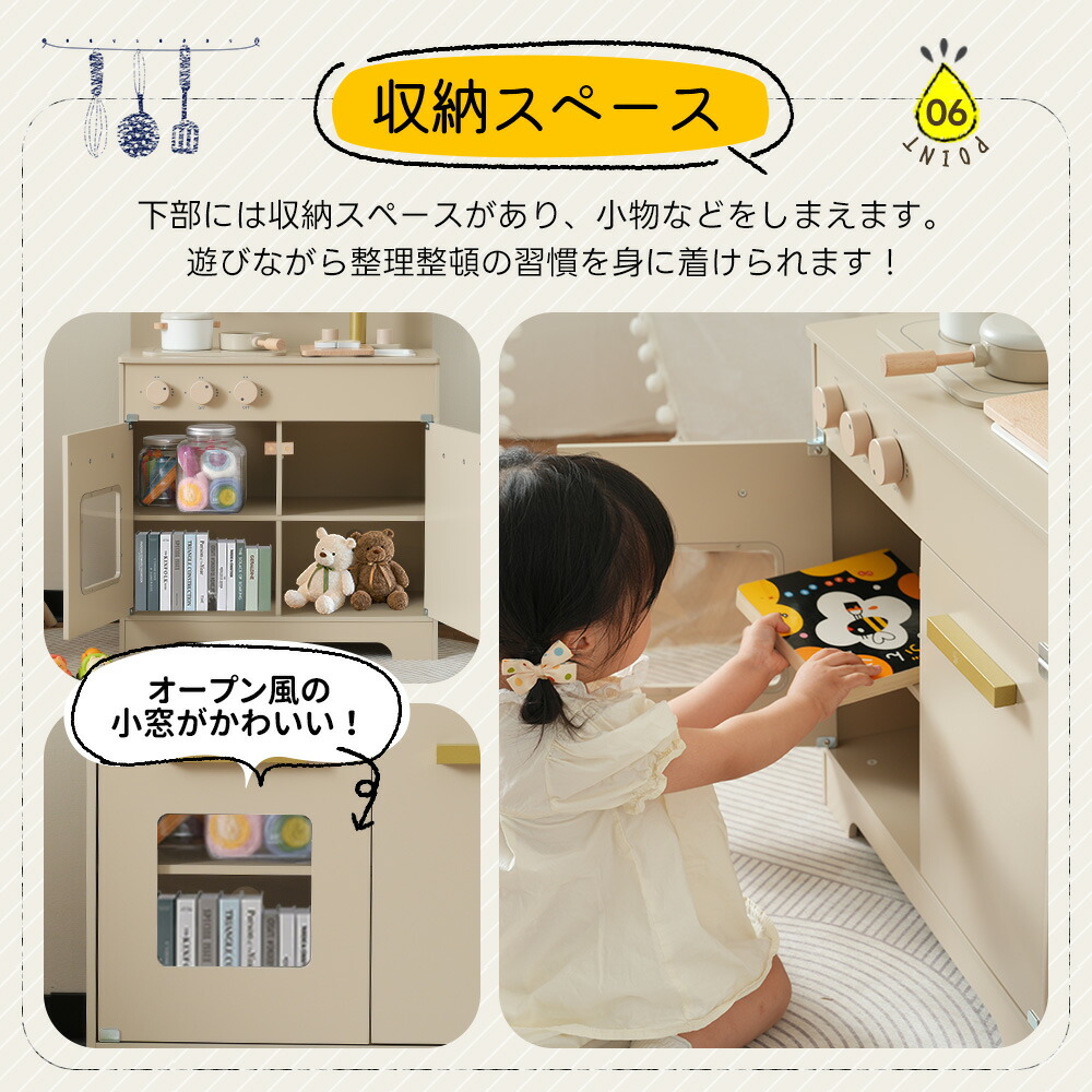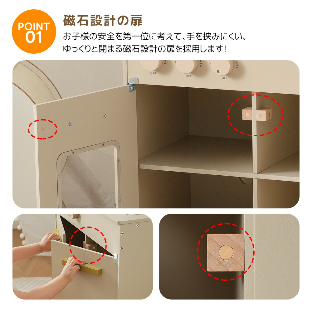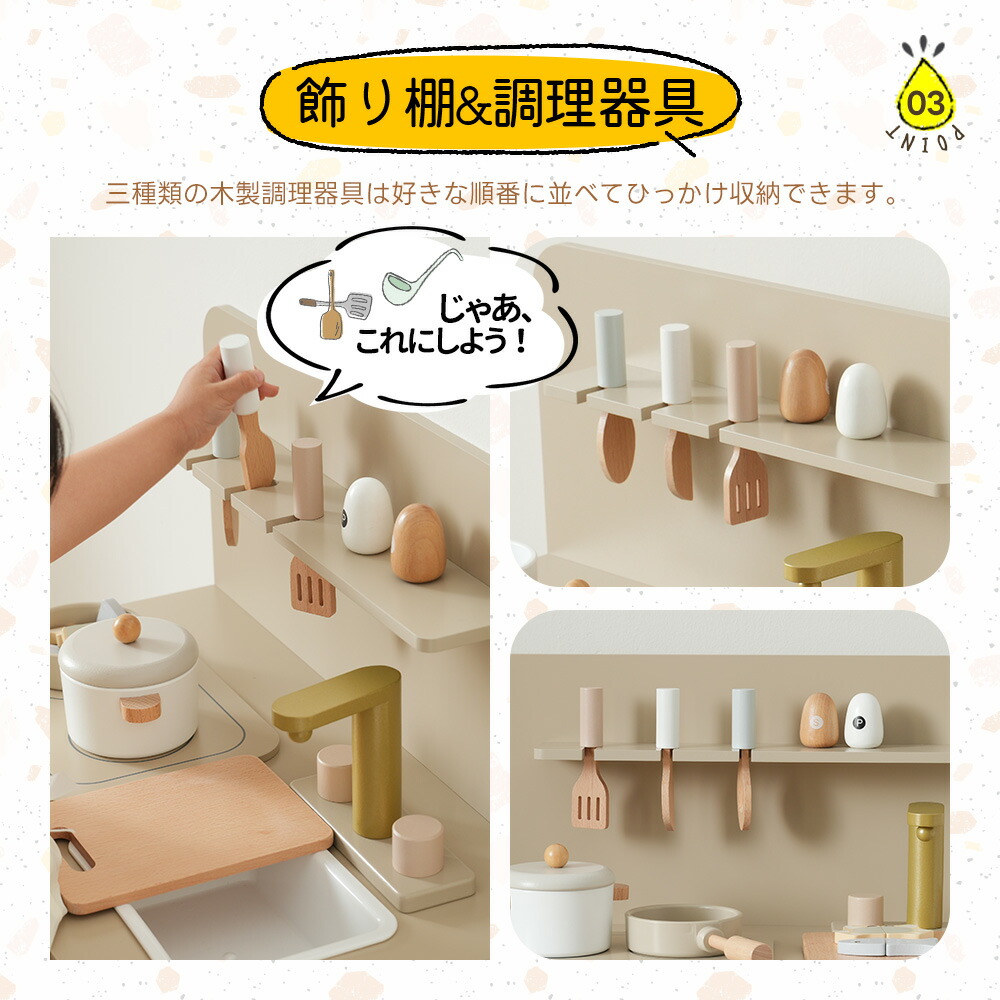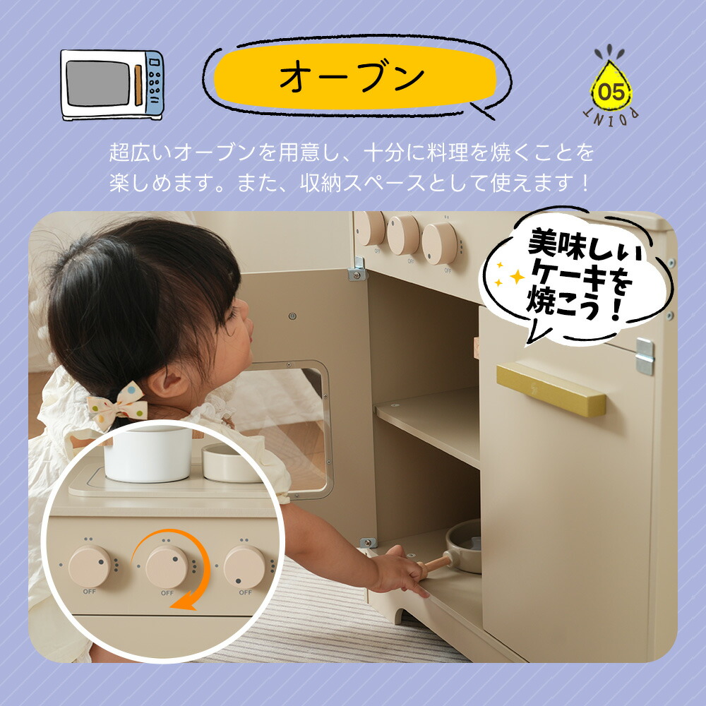 OSJ おままごと キッチン 木製 4 おもちゃ ままごと ごっこ遊びトイ 家事 早い者勝ち グレーピンク グレー ホワイト ピンク