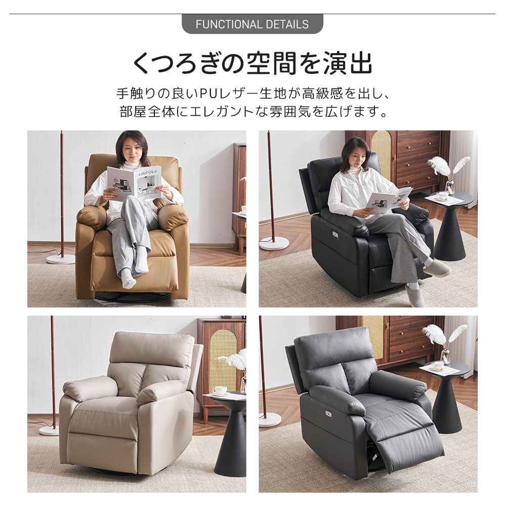 リクライニングソファ 165°調整可能 ブラック アッシュグレー ライトコーヒー ダックグレー