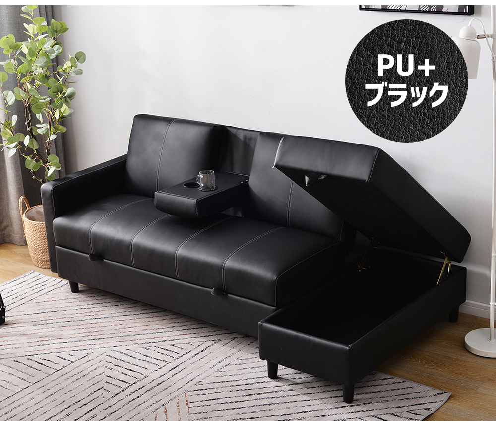 ソファー ソファ 3人掛け ソファーベ アイボリー グレー ダークグレー PU+ブラック ベージュ